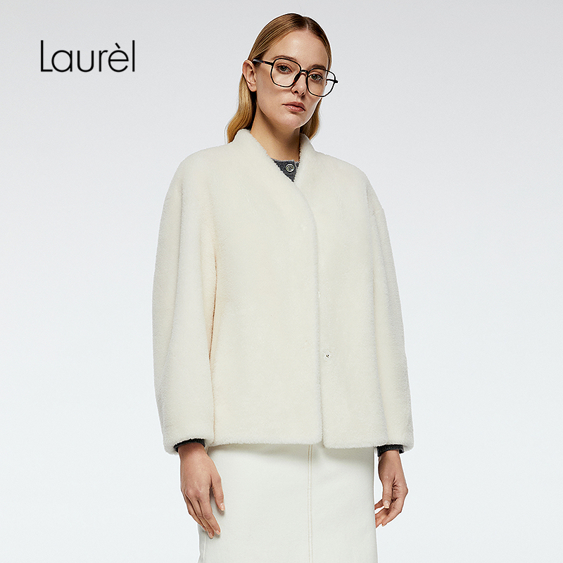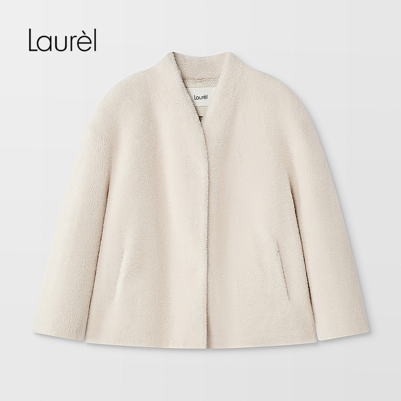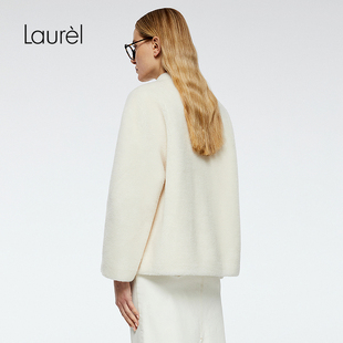 皮毛一体宽松直身外套LWD363R00200 Laurel劳芮25秋新款 绵羊毛