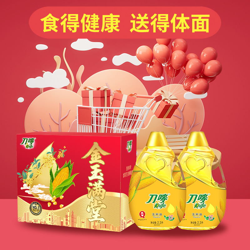 2瓶送礼家用食用压榨植物油 玉米油2.2 刀唛 Knife金玉满堂礼盒装