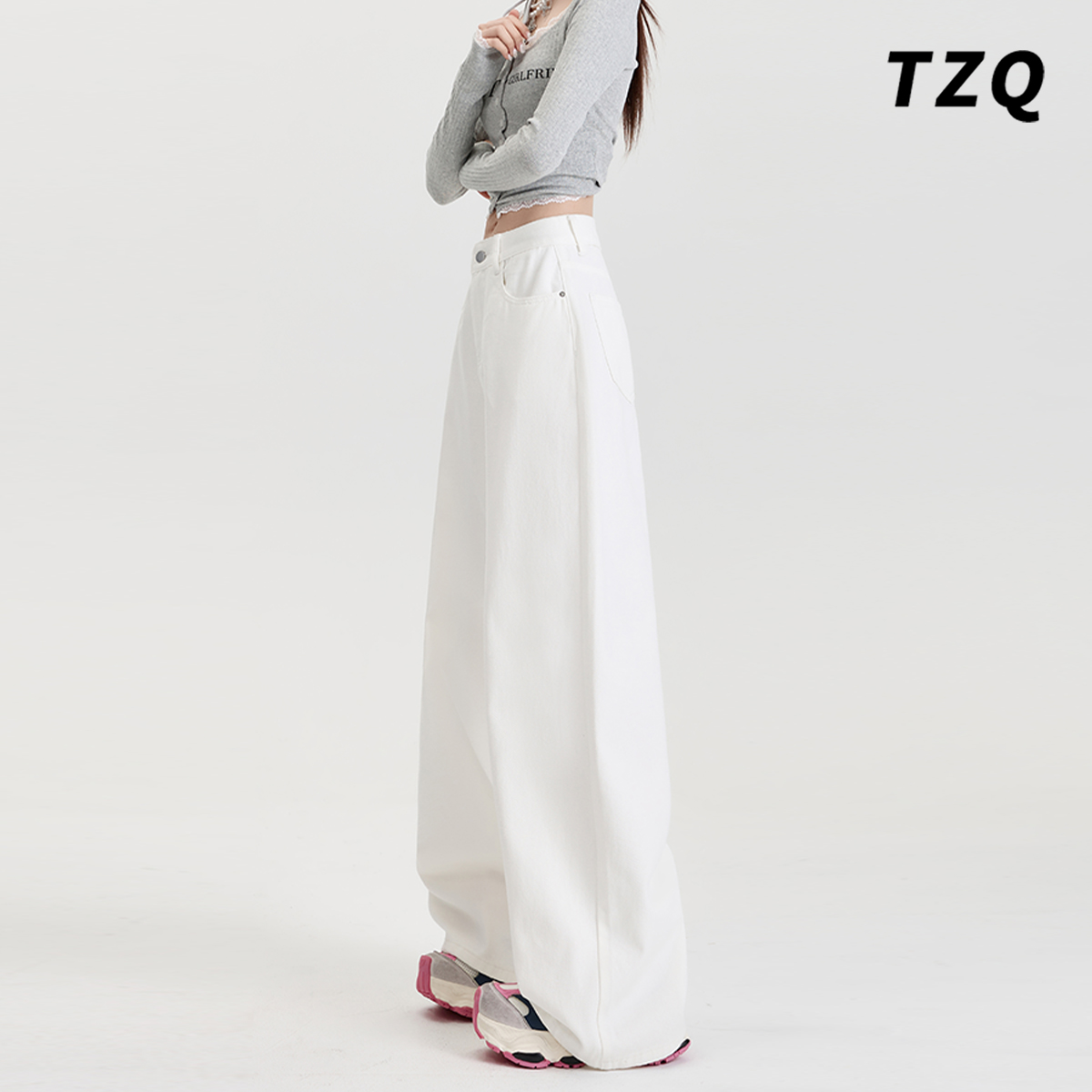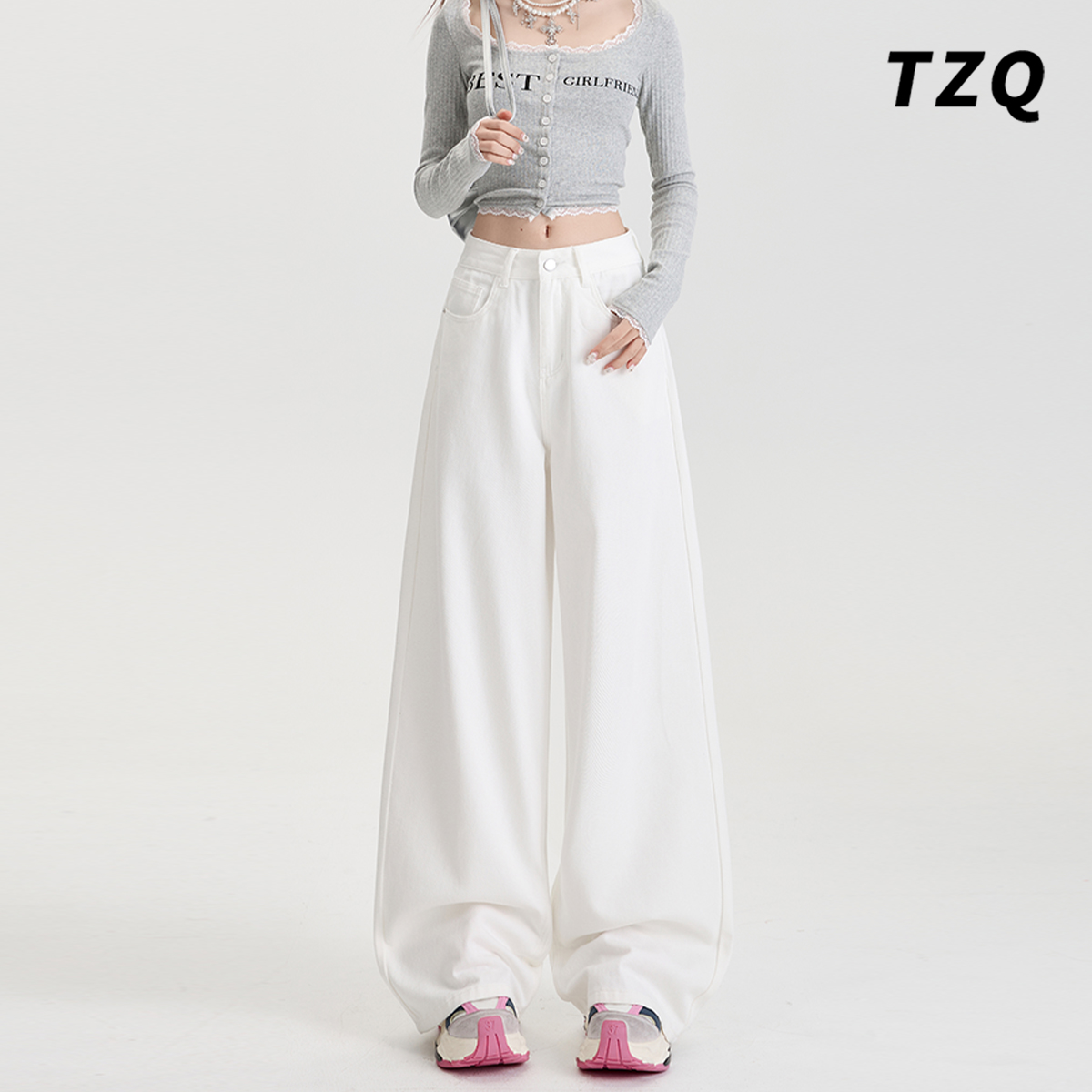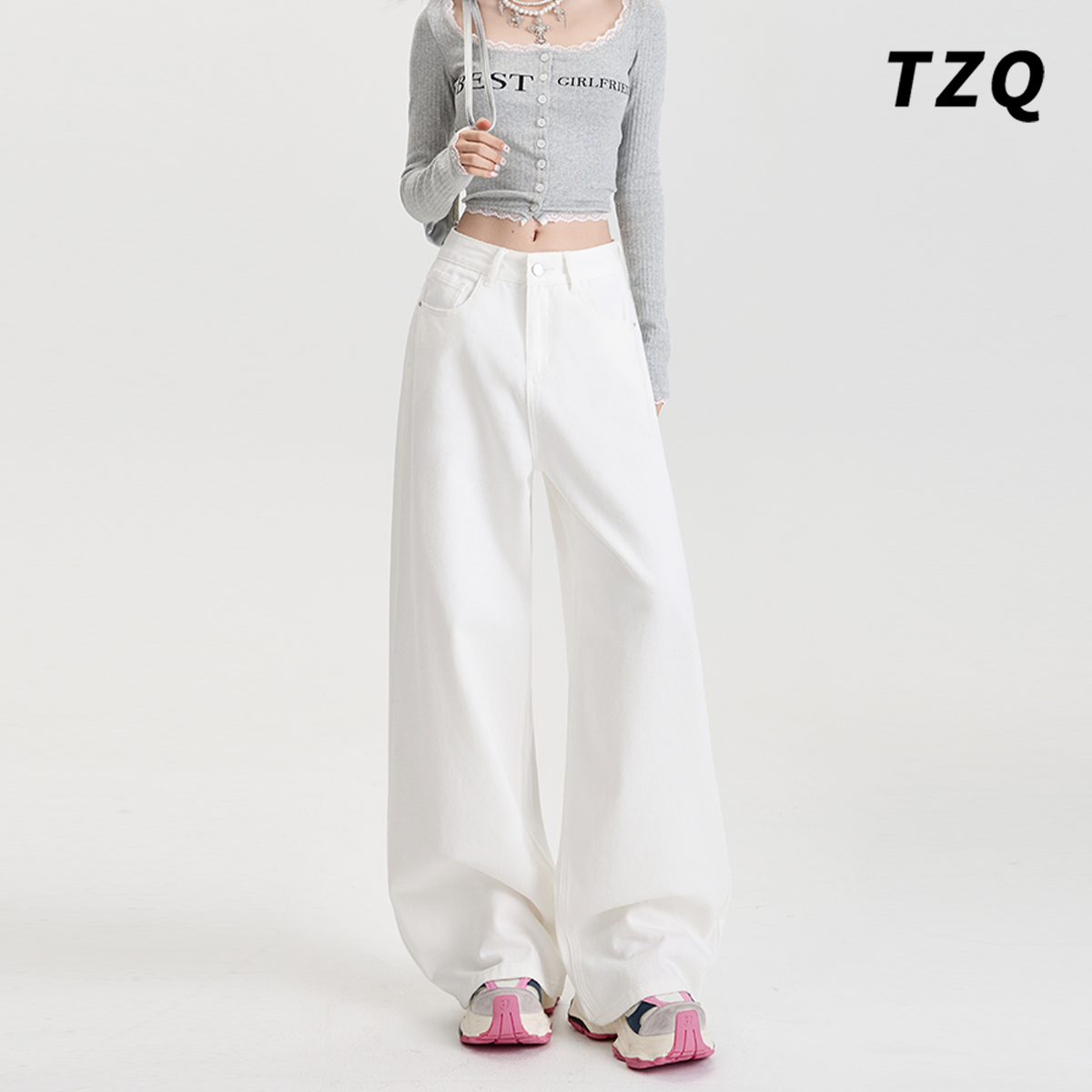 百搭直筒裤 高腰宽松显瘦垂感时尚 子 女2025爆款 白色三防阔腿牛仔裤