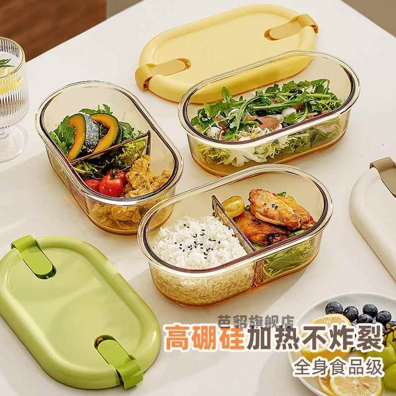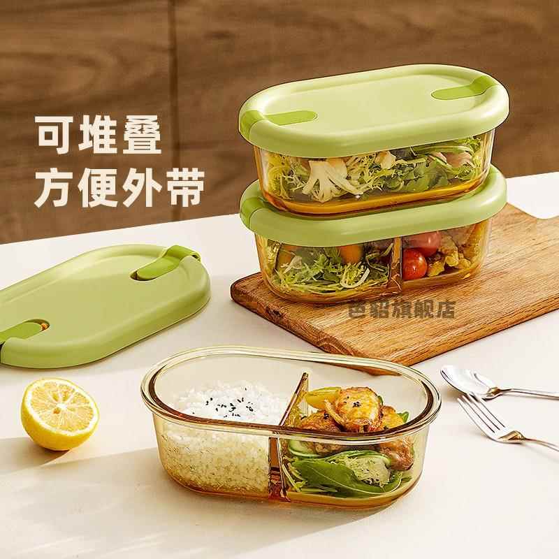 玻璃饭盒可微波炉加热专用学生上班族带饭盖餐盒保鲜分隔型便当盒