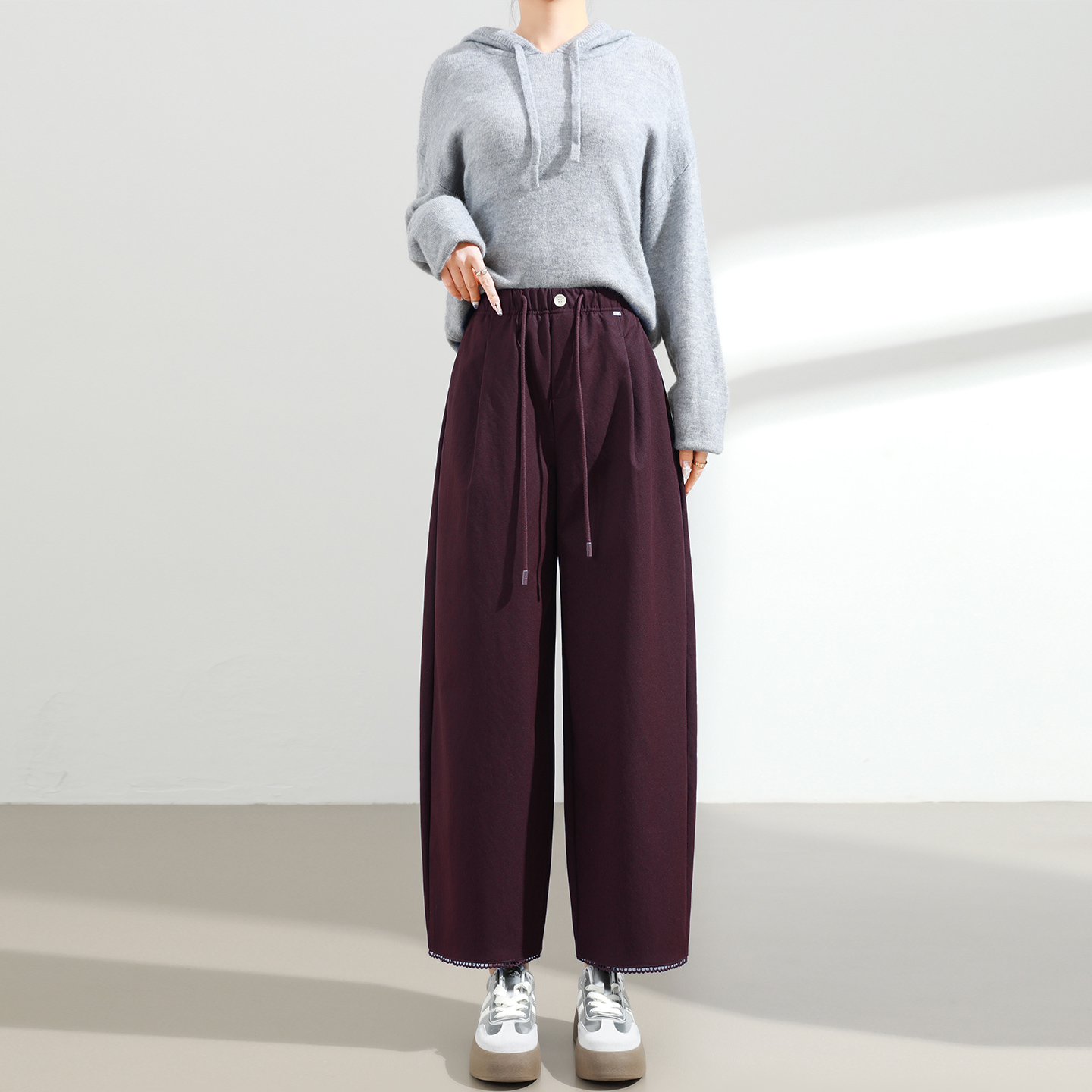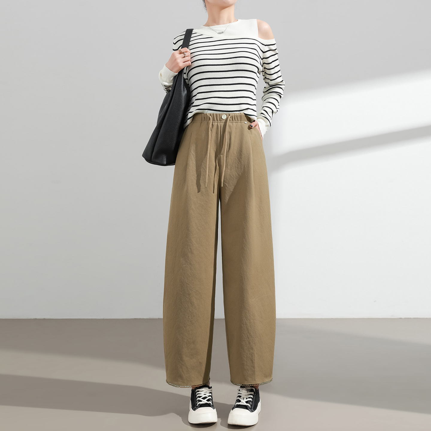 高腰宽松显瘦小个子百搭抽绳灯笼裤 新款 女2025秋季 九分休闲阔腿裤