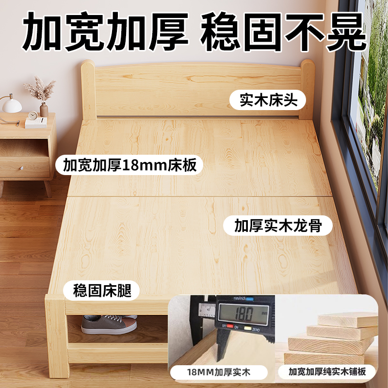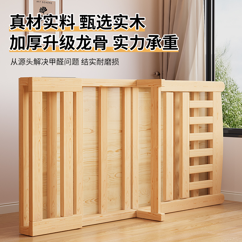 折叠床实木单人床午休神器办公室家用免安装 双人床出租房实木小床