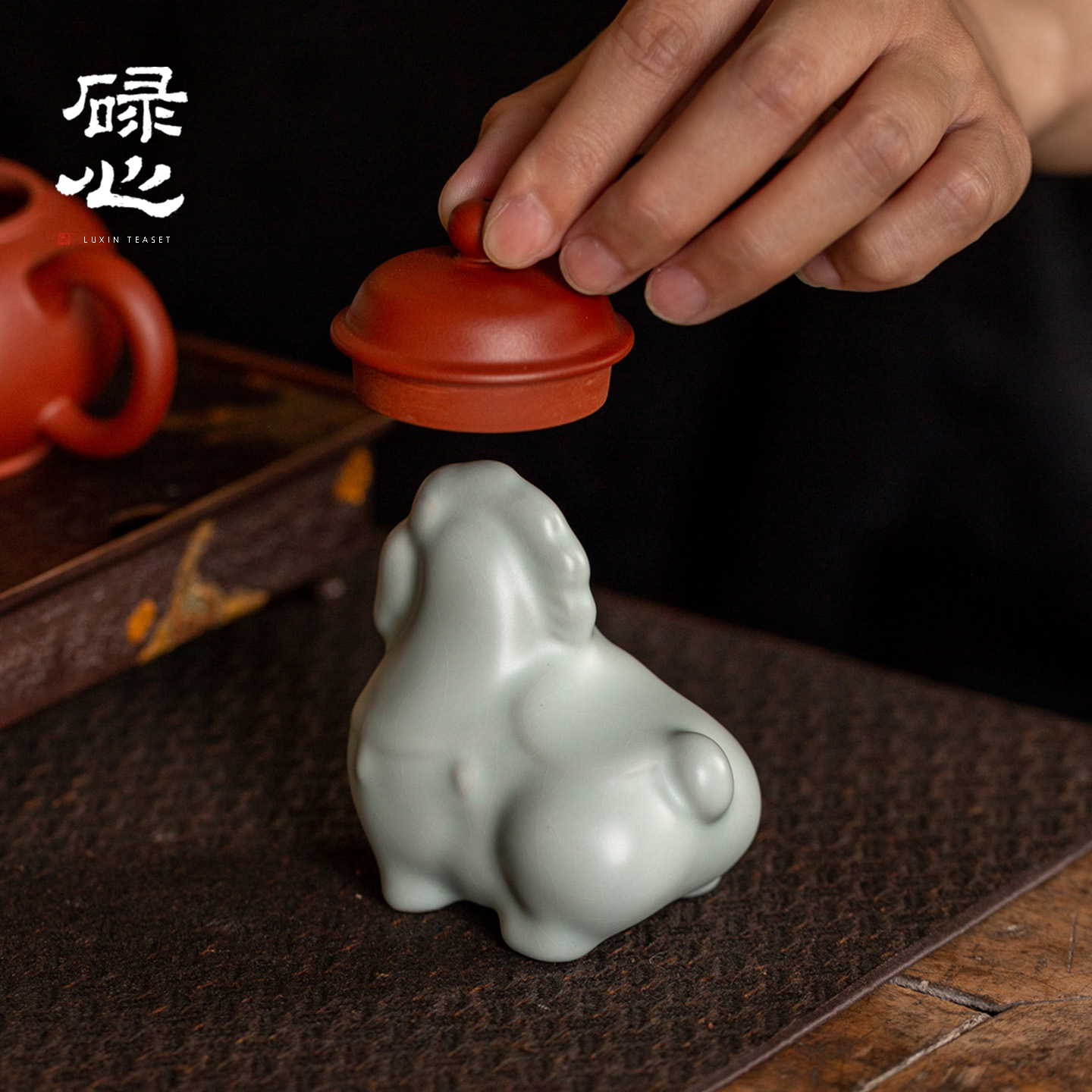 家居庭院花园造景装 茶台桌面茶宠茶玩 饰品 汝窑唐马小摆件 碌心