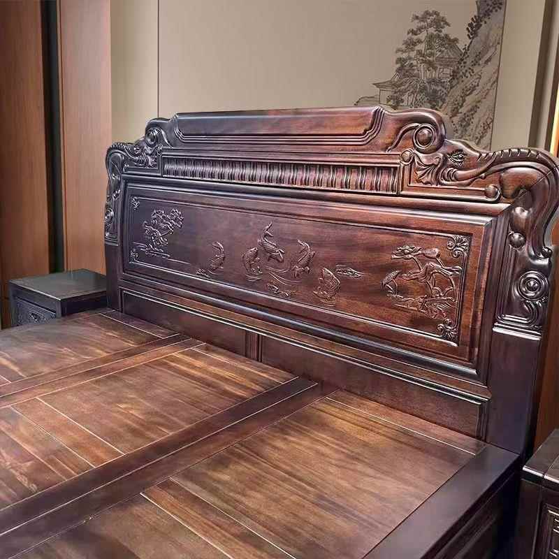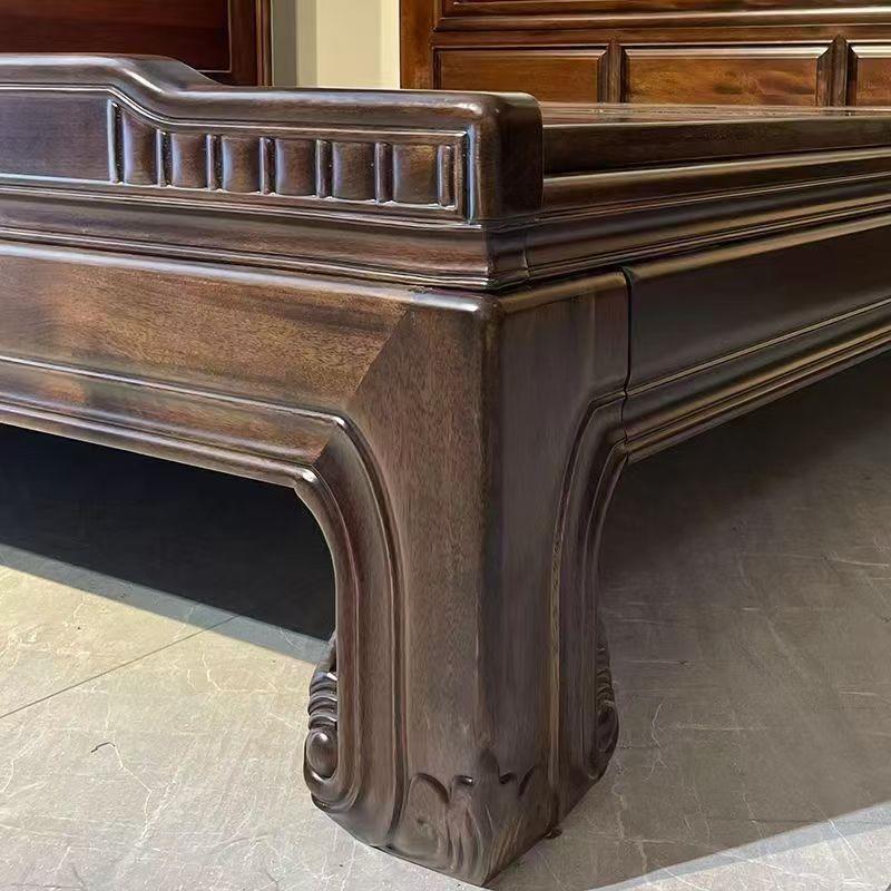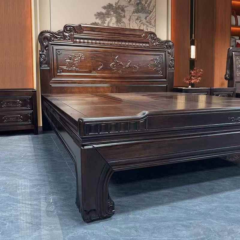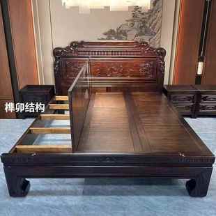 全榫卯紫檀木实木床1.8双人主卧家用中式 明清古典雕花1.5实木婚床