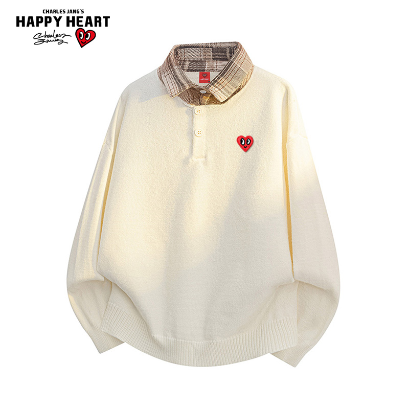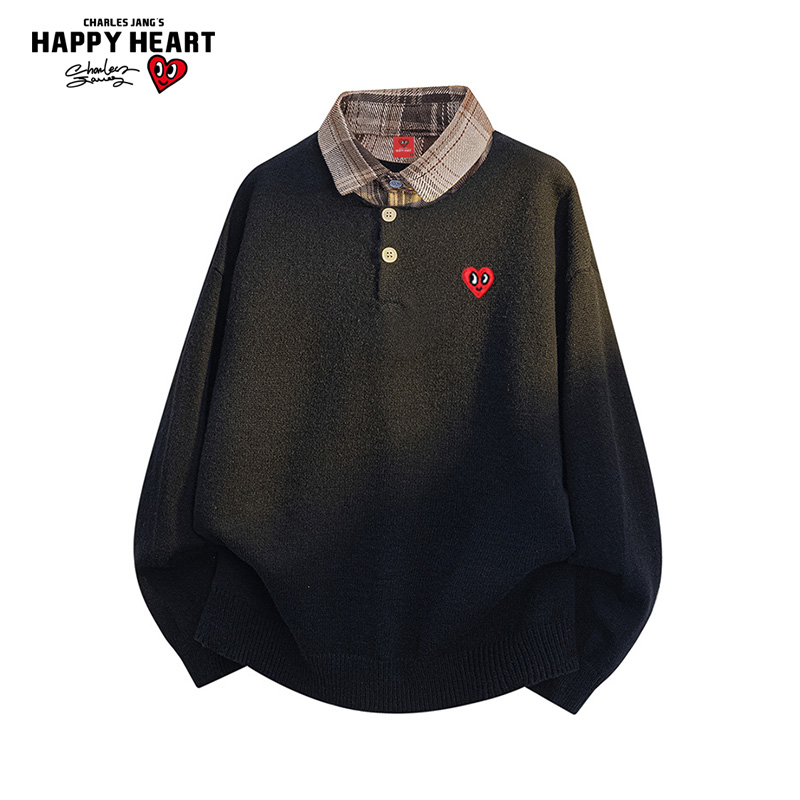 假两件百搭情侣针织衫 新款 领毛衣男秋冬季 查尔斯桃心拼色格纹衬衫