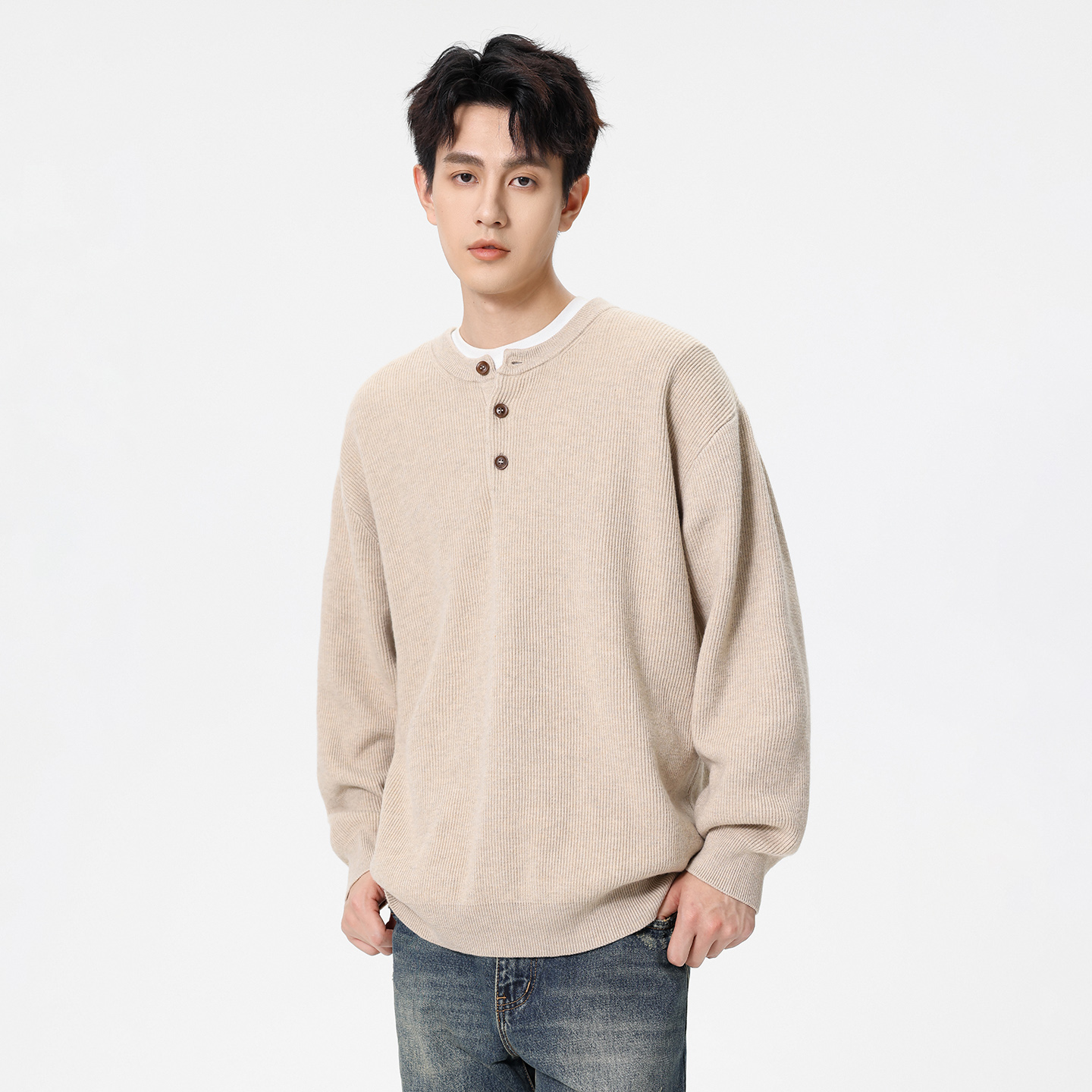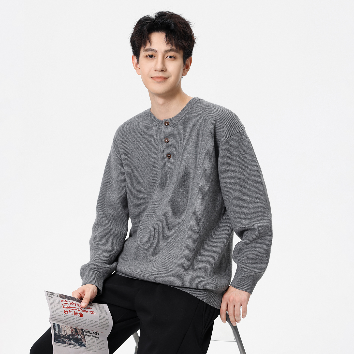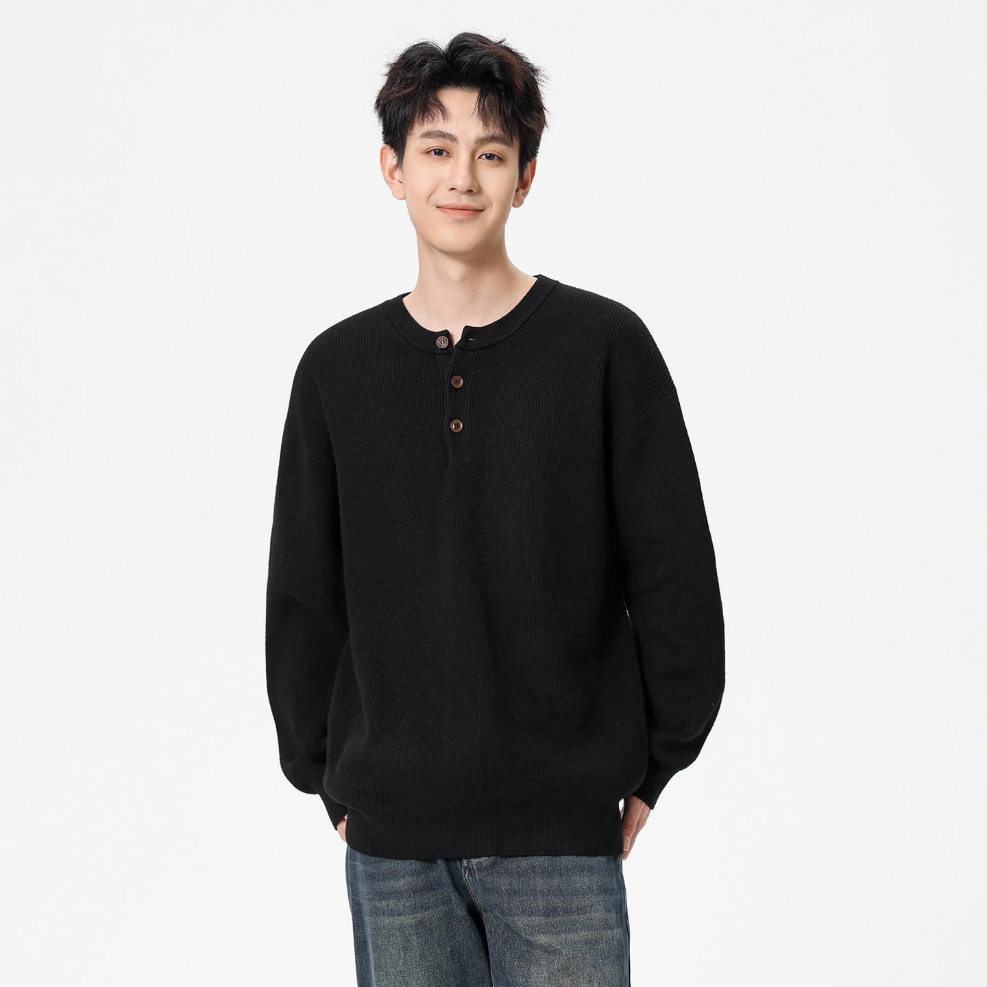 hansca重磅600g色纺纤绒纱黑色毛衣高级感长袖 上衣服 t恤纯色冬季