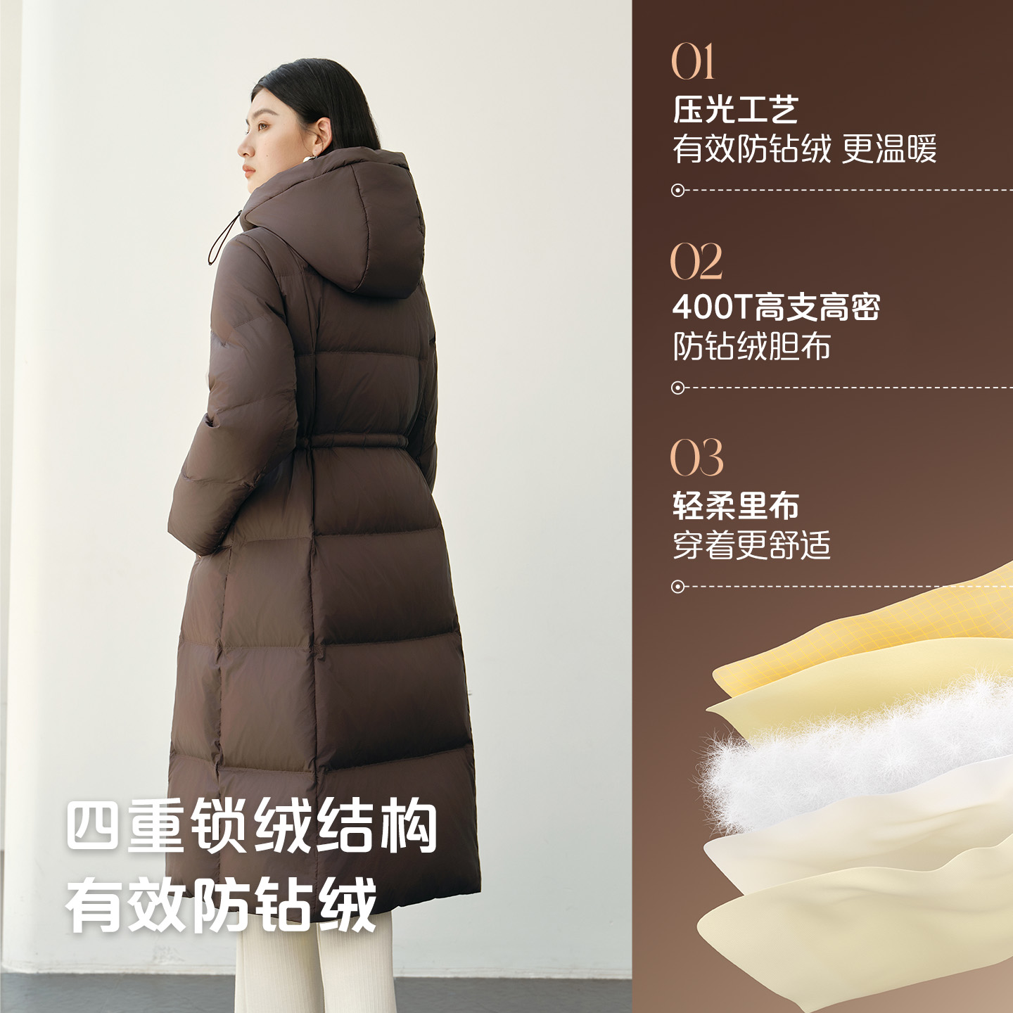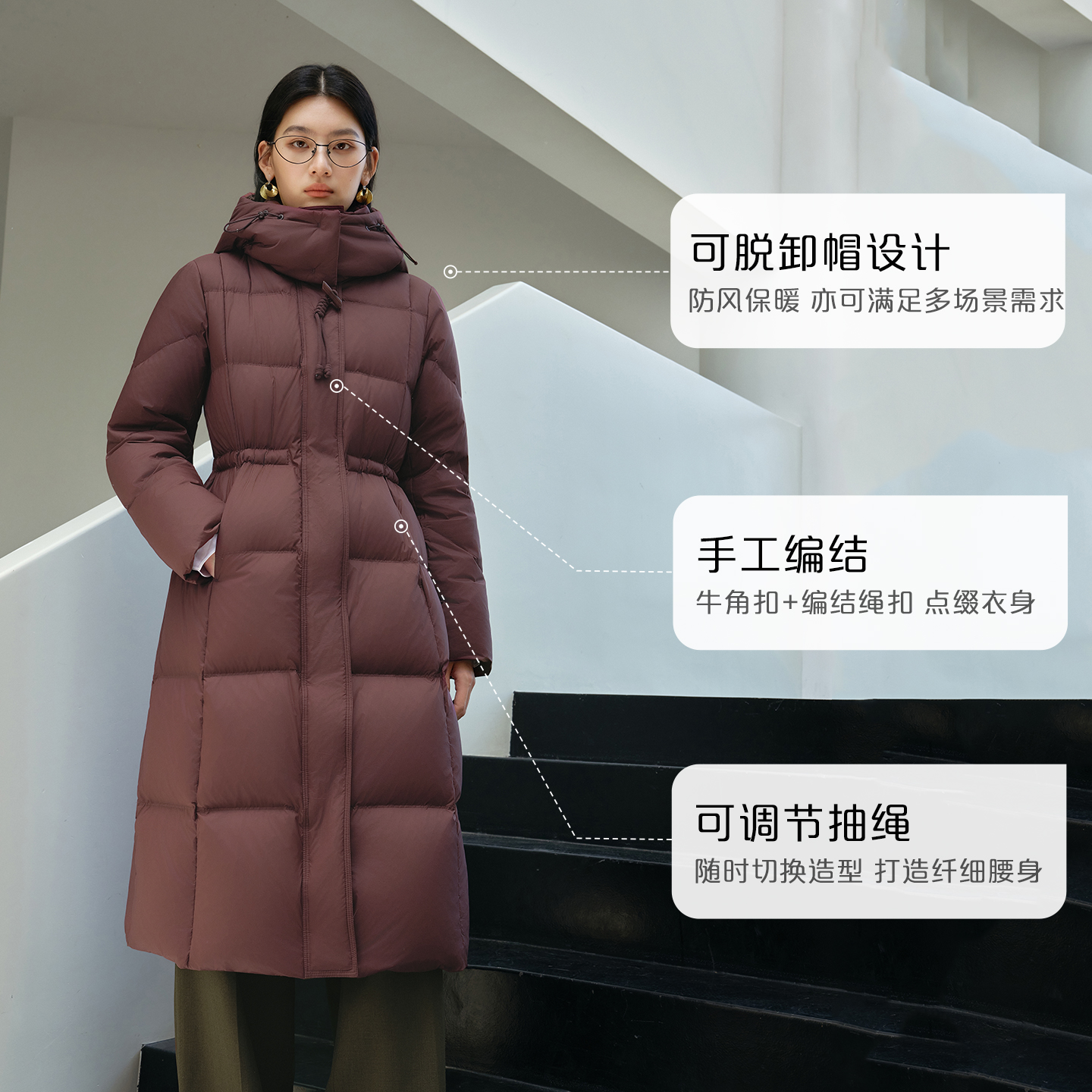 艾莱依2025秋冬新款 可脱卸连帽防风保暖收腰显瘦外套 羽绒服女长款