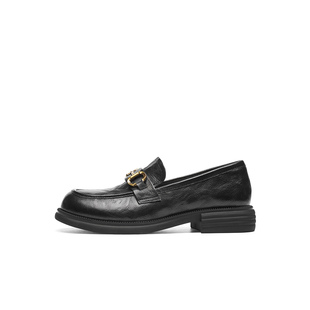 复古单鞋 女2025秋季 红蜻蜓羊皮乐福鞋 真皮黑色小皮鞋 双11预售