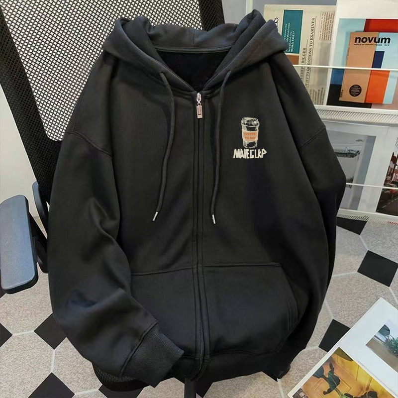 重磅宽松青少年加绒拉链上衣外套潮 秋冬2025新款 开衫 连帽卫衣男士