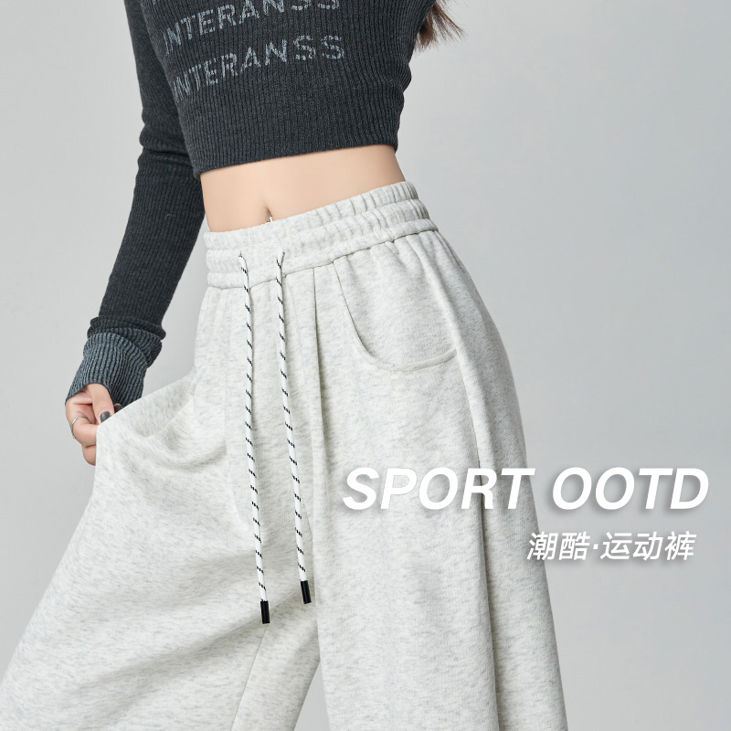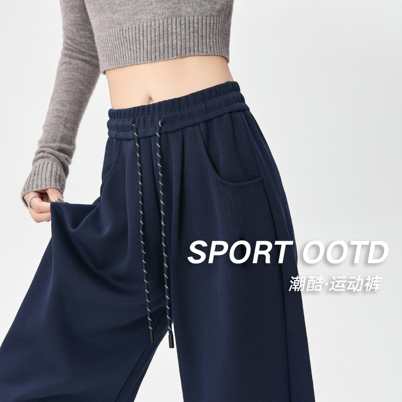 子女春秋季 卫裤 2025新款 美式 垂感宽松慵懒休闲阔腿裤 藏青色运动裤