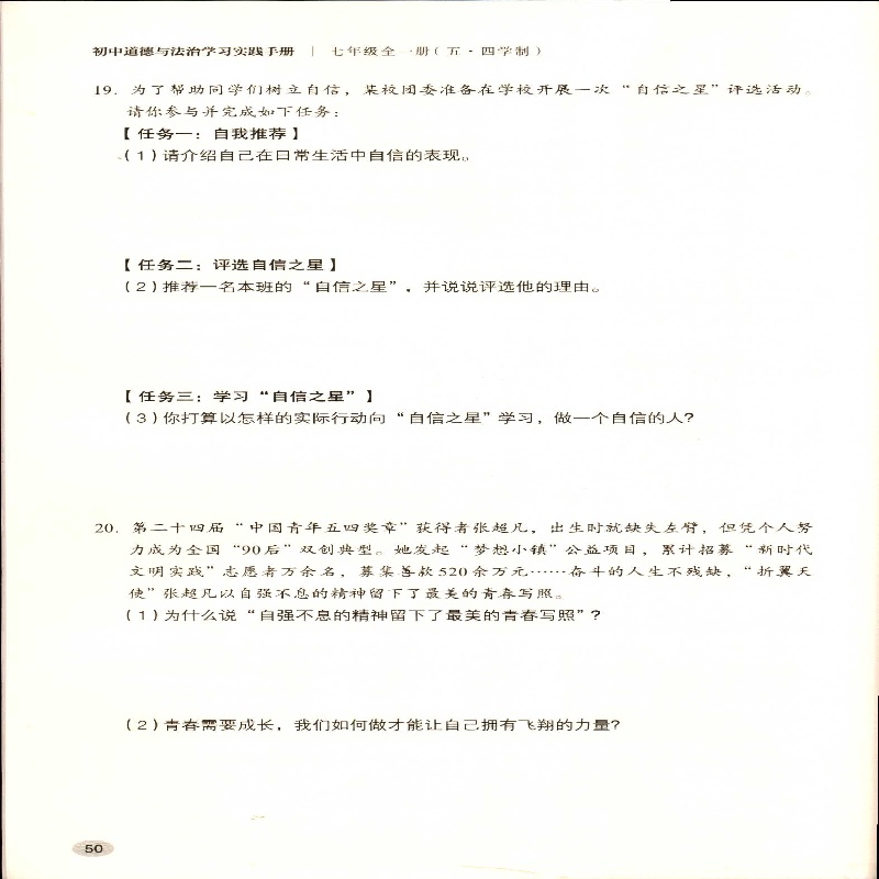 配统编版 2025秋五四制初中道德与法治学习实践手册 7七年级全一册