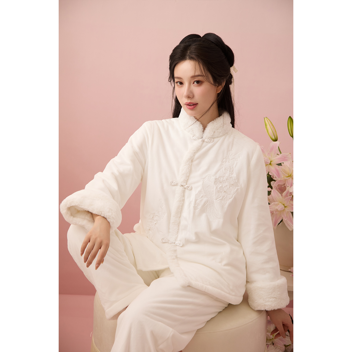 汉服珊瑚绒加绒加厚家居服 古风新中式 RoseTree国风睡衣套装 女冬季