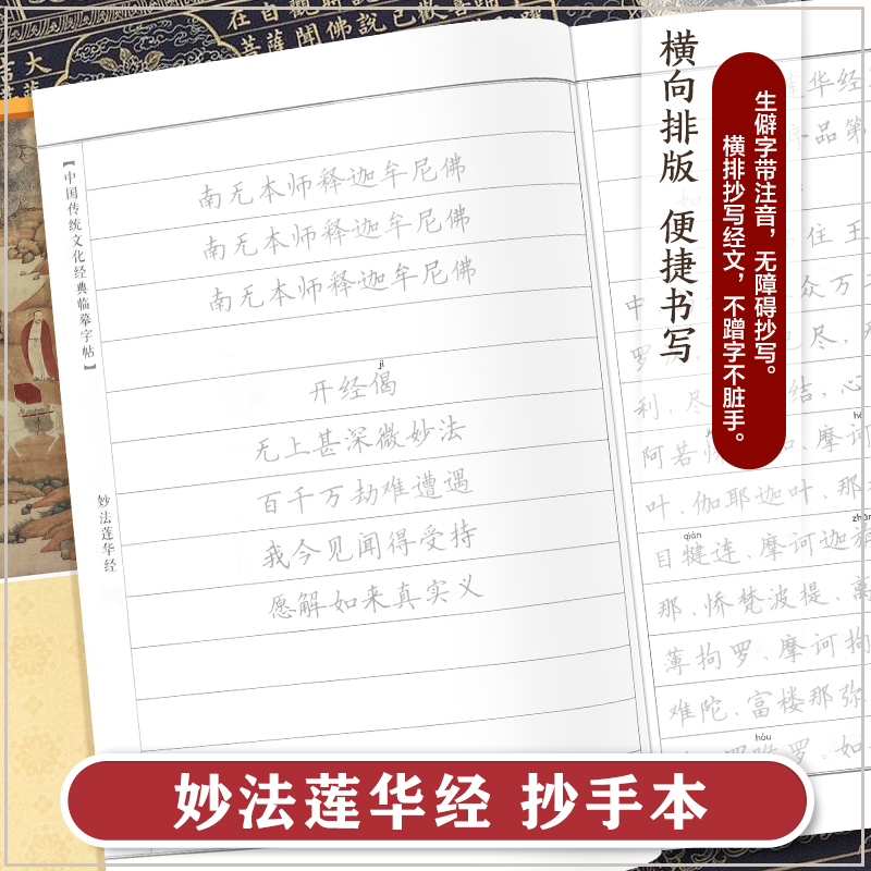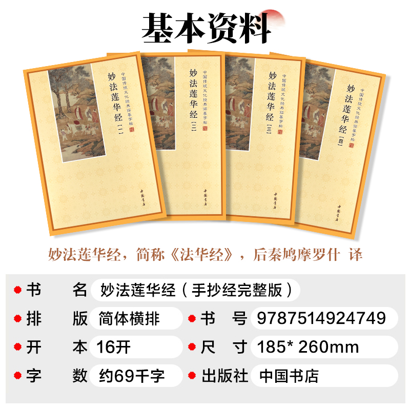 全套4册 大乘妙法莲华经正版 中国传统文化经典 法华经手抄本佛经抄经本可手写 抄写本硬笔书法 手抄经小楷 妙法莲华经临摹本楷书版