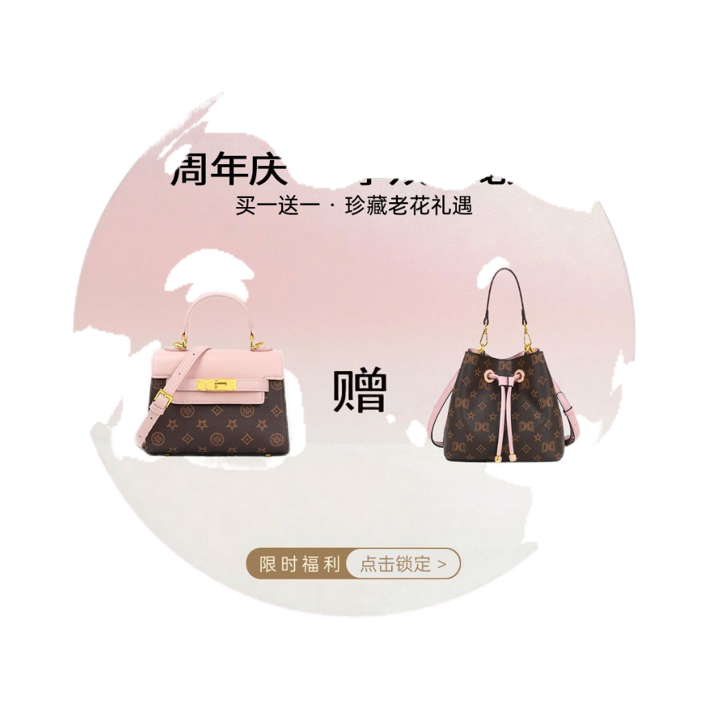 百搭老花斜跨包女通勤凯丽水桶包包 达芙妮周年庆时尚 买一赠一