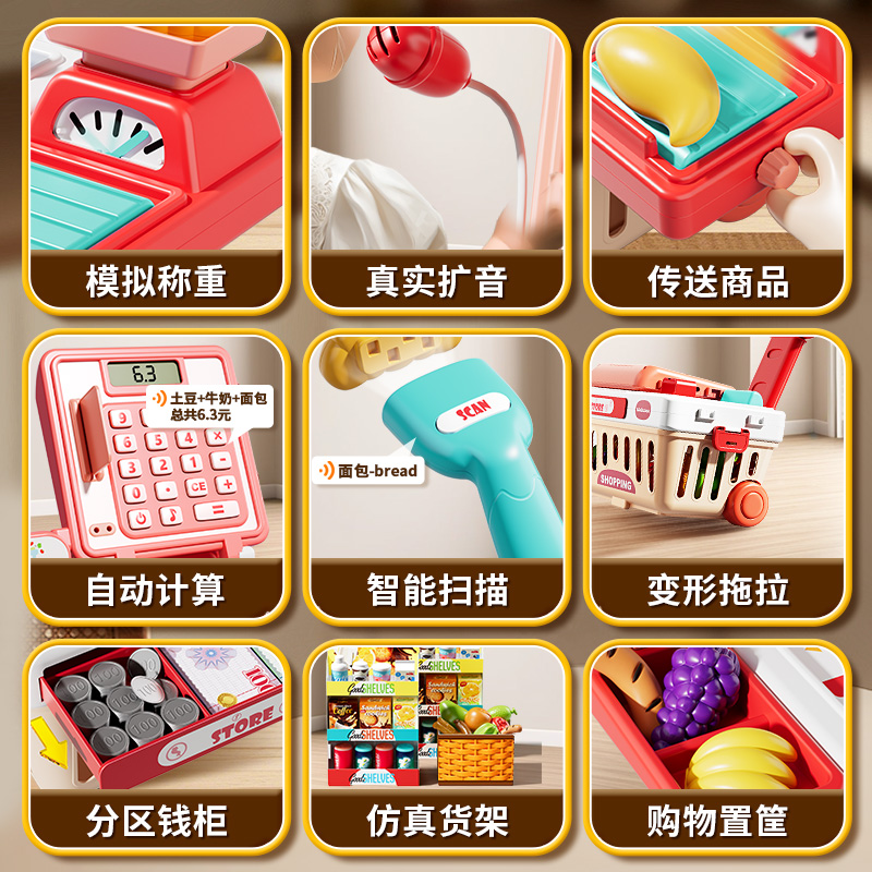 便利店网红爆款 超市收银机儿童玩具过家家女孩子厨房仿真购物车男