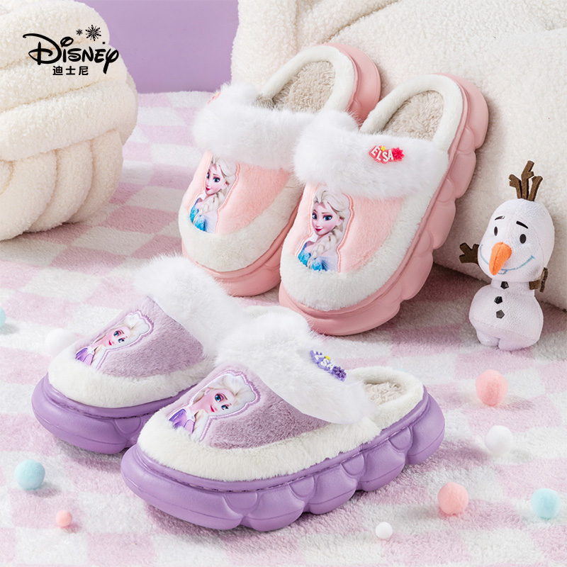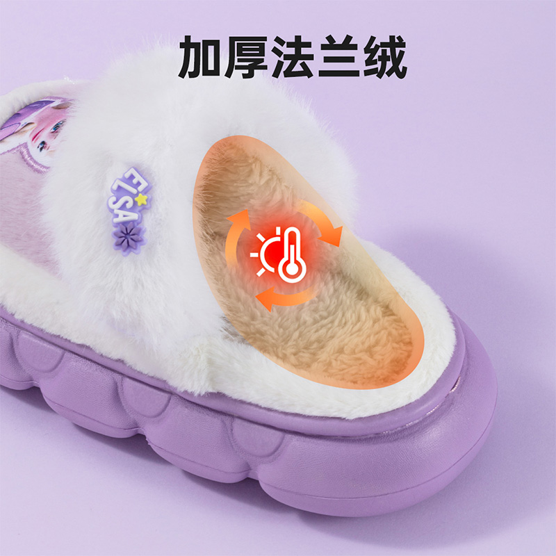 保暖加绒厚底居家女孩棉拖 新款 迪士尼儿童棉拖鞋 女童爱莎公主冬季