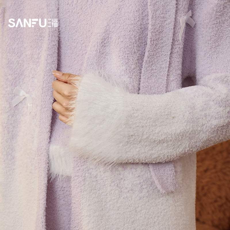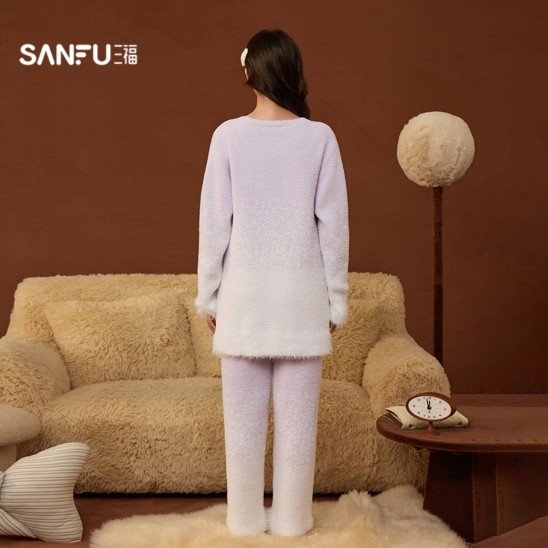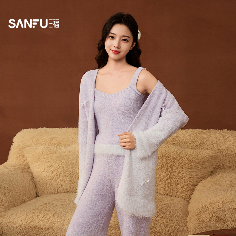 三福女冬季 甜美宽松家居服507909 柔软半边绒渐变三件套睡衣