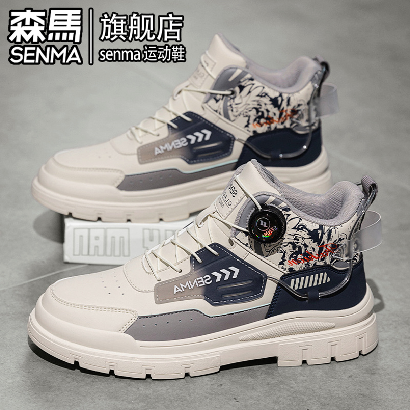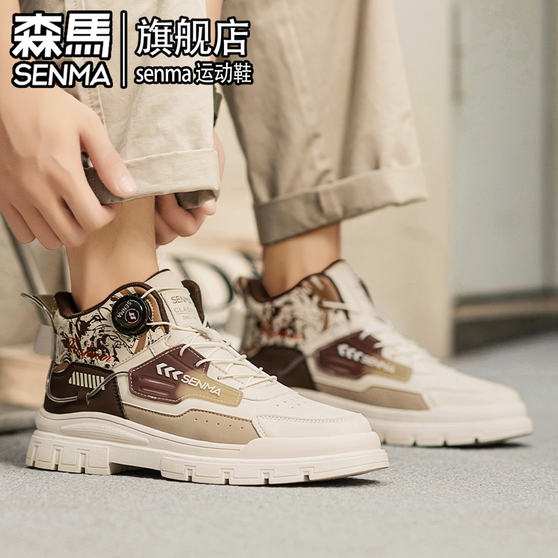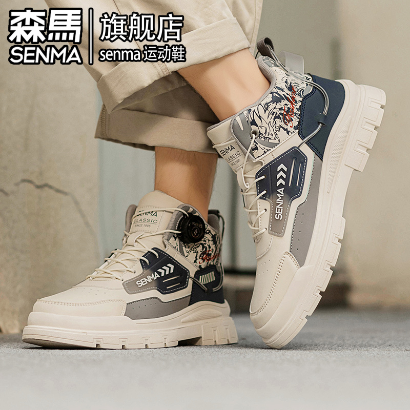 真皮软底增高工装 森马马丁靴男鞋 男士 高帮运动休闲白色板鞋 靴 秋季