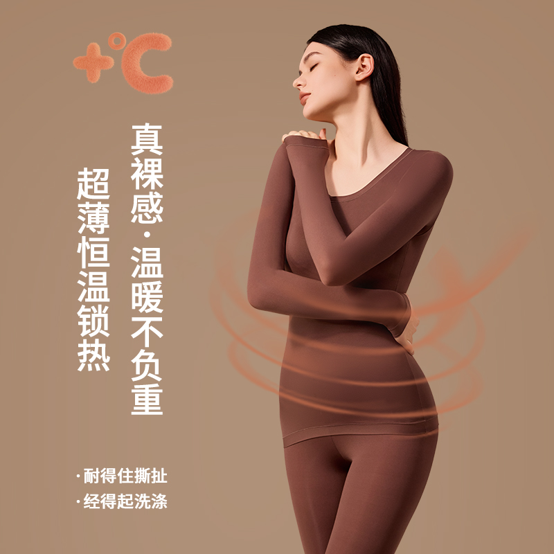 保暖衣薄套装 雅鹿保暖上衣女肌底衣美肤衣秋衣秋裤 内搭发热打底衫