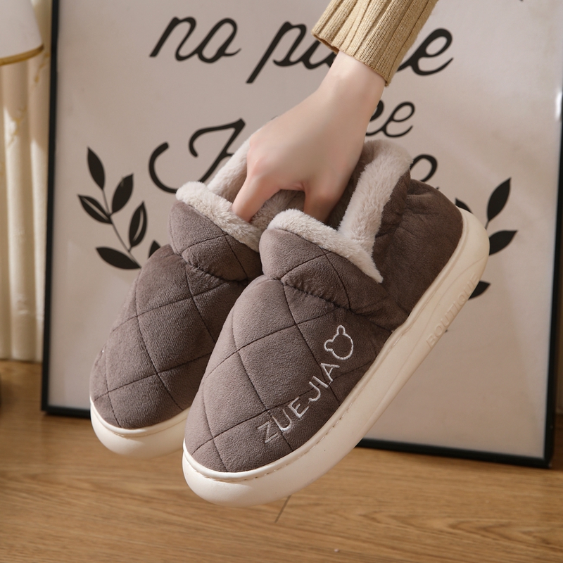 外穿 防水加厚厚底男款 棉拖鞋 防滑老人专用室内家居防摔女士秋冬季