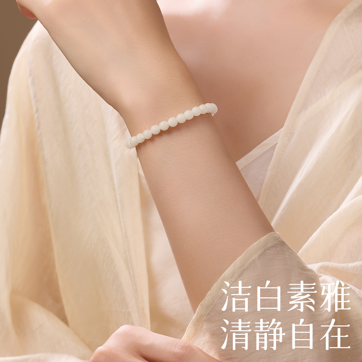庆祥泰天然白玉菩提根手串女款 旗舰店收藏级原籽真品高端手链 正品
