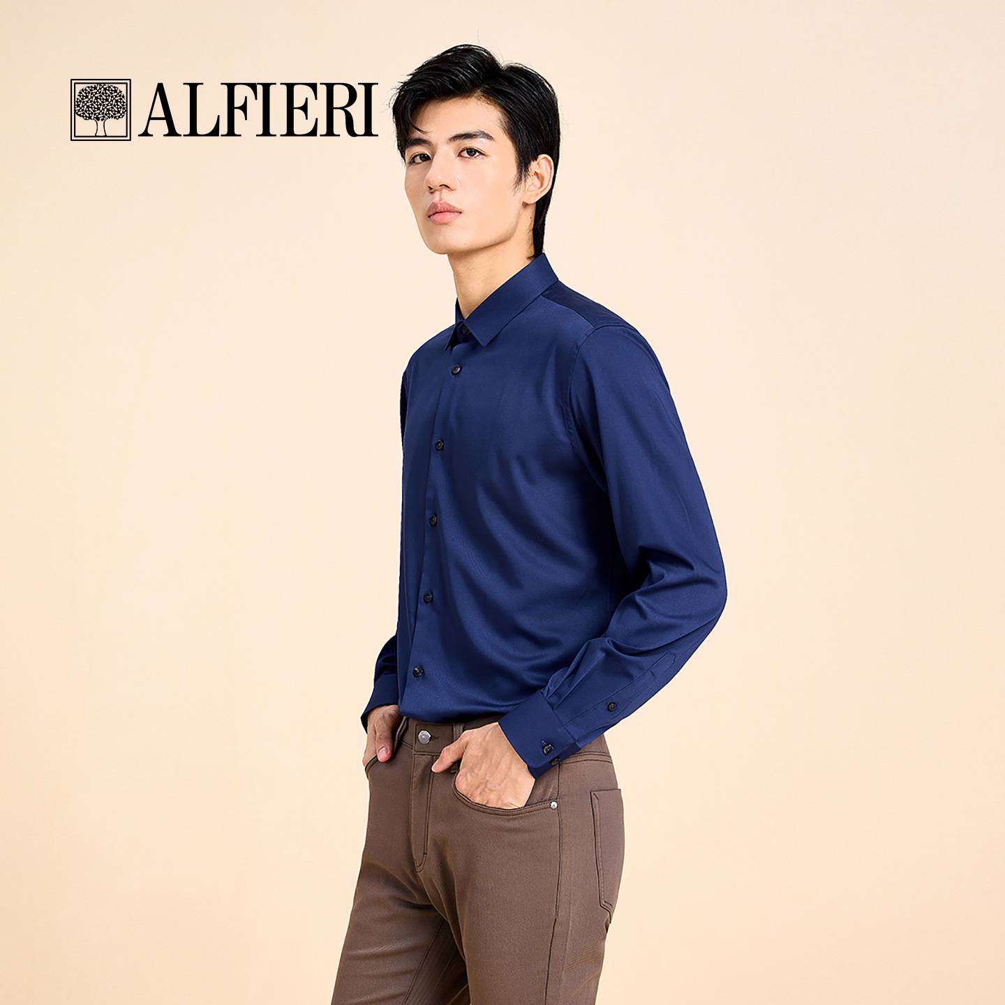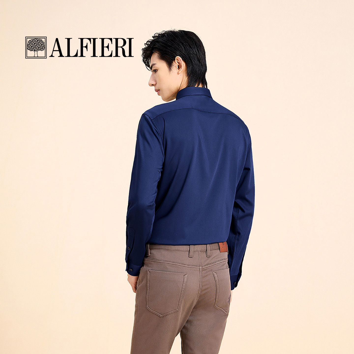 衬衫 纯色 高级面料 男式 柔软舒适 型 长袖 挺括版 艾法利 立体剪裁