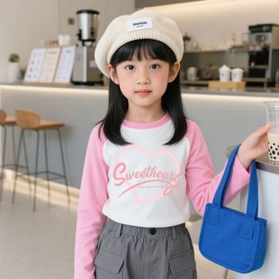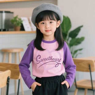 儿童打底衫 春秋款 t恤2025新款 女童长袖 宝宝内搭上衣洋气拼色秋装