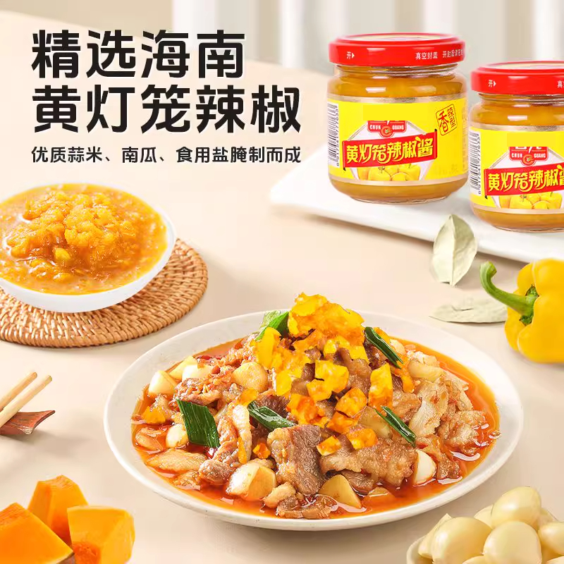 春光食品海南特产调味29年国货黄灯笼辣椒酱香辣特辣组合酱料