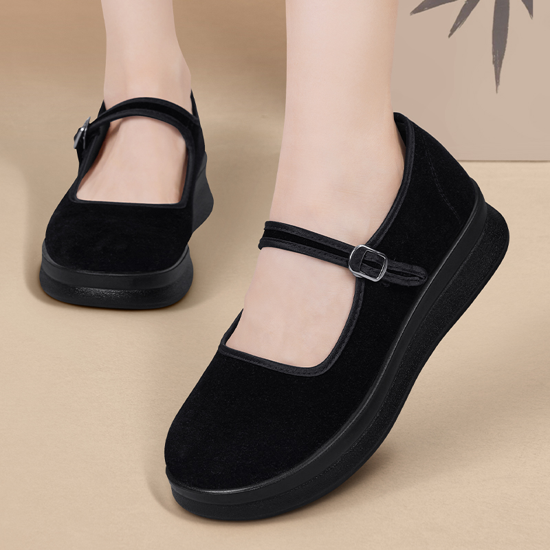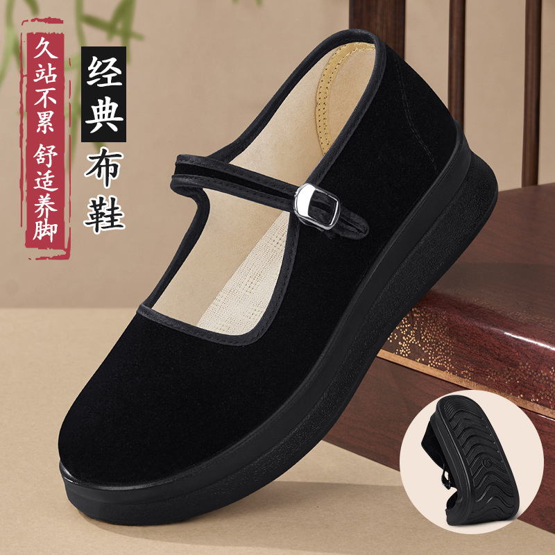 舒适透气厚底黑工作鞋 软底一脚蹬妈妈鞋 防滑 女2025新款 老北京布鞋