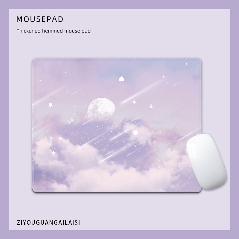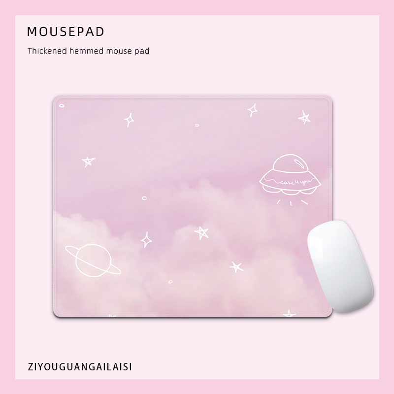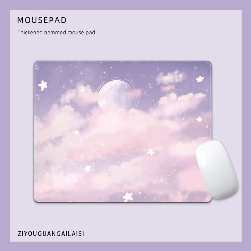 粉色天空鼠标垫女生高颜值办公室桌面桌垫笔记本键盘垫防滑锁边