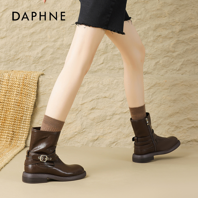 达芙妮棕色马丁靴女2025秋冬新款 美拉德西部牛仔靴英伦风小短靴子