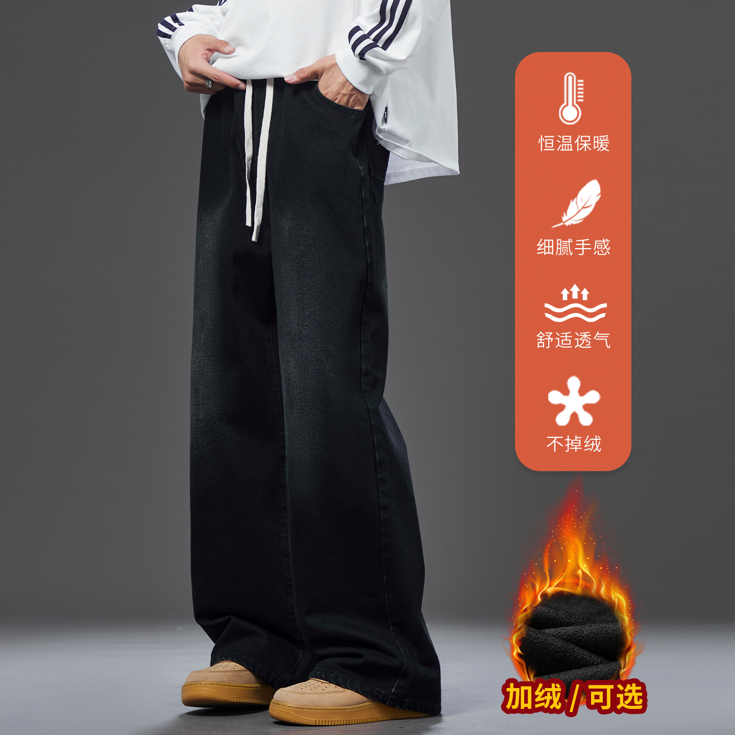 高腰宽松加绒松弛感拖地裤 高级感白色阔腿牛仔裤 女2025年秋冬新款