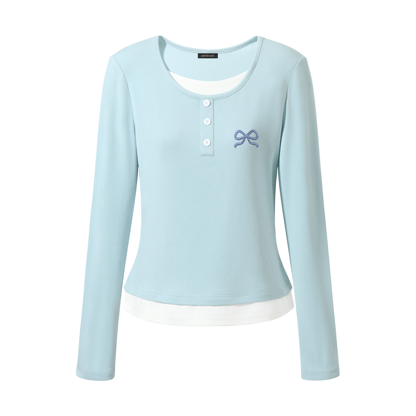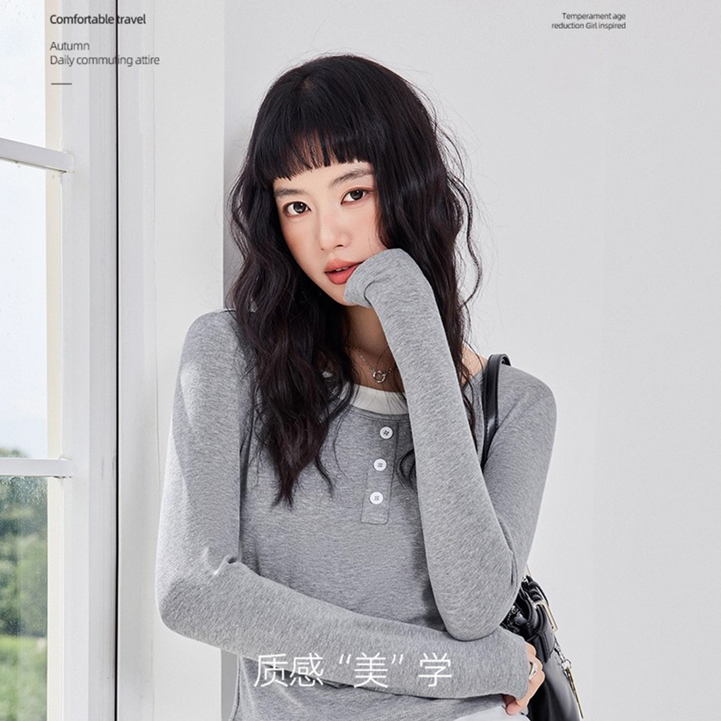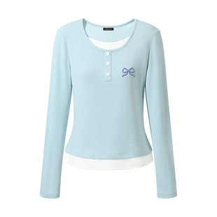 假两件打底衫 2025新款 韩系chic别致上衣 t恤女春秋款 LB真维斯长袖