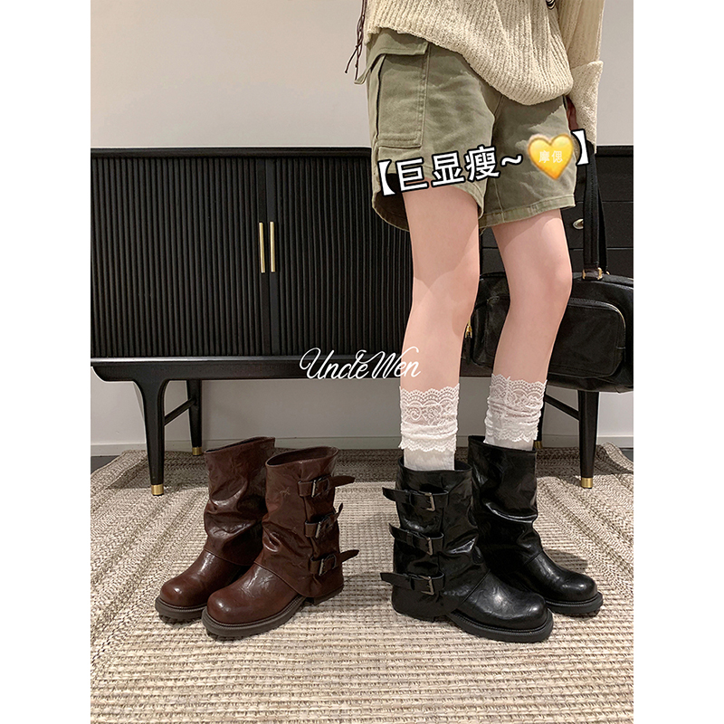 厚底中筒靴女2025秋夏新款 管靴内增高高跟 西部牛仔短靴子马丁靴裤