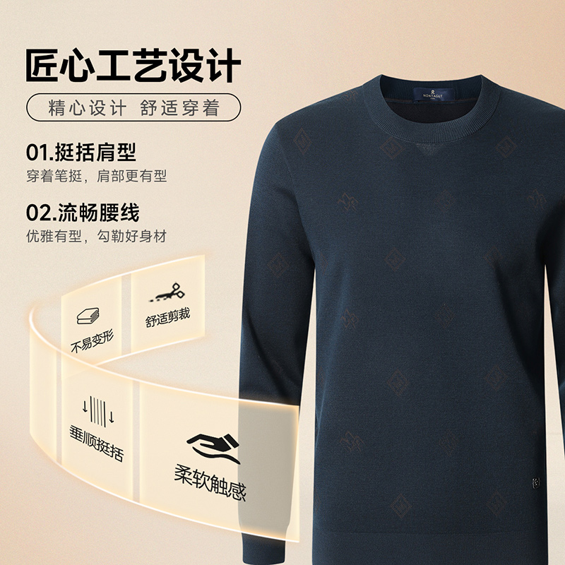 羊毛混纺 保暖长袖 柔软保暖 男士 羊毛衫 梦特娇2025秋冬新品
