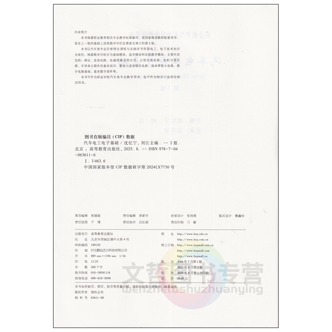 高教版 高等教育出版 职业教育汽车类专业教学用书 沈忆宁刘江主编 社职高中等职业学校课本 第2版 中职教材汽车电工电子基础第二版