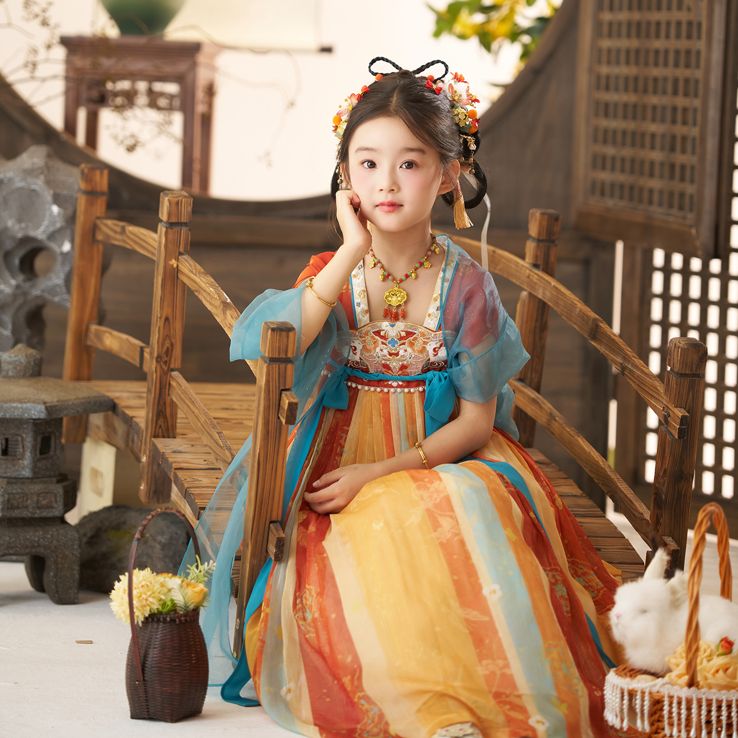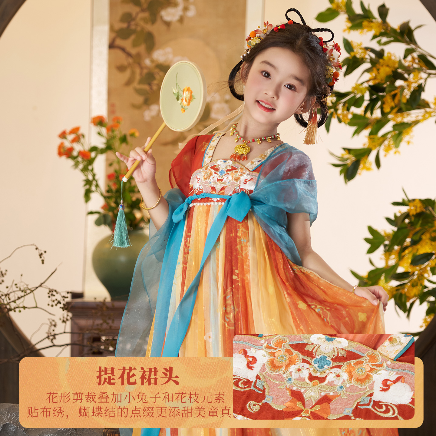 国风汉服女童刺绣齐胸连衣裙中秋新款 十三余童装 晴云秋兔
