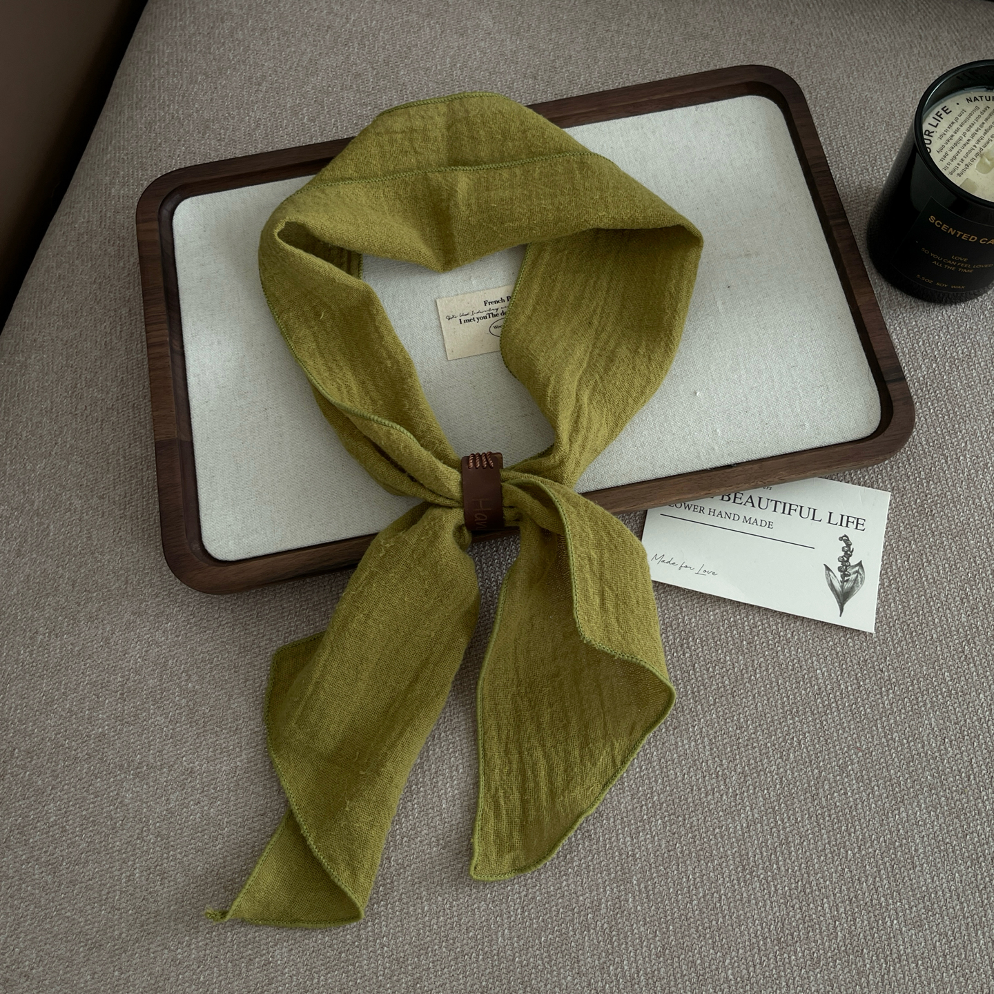 气质纯色高级感皮扣亚麻丝巾飘带围巾女洋气长条护颈丝带发带绑包