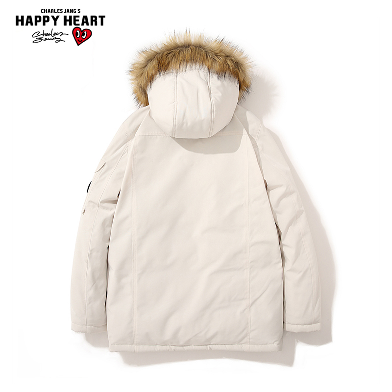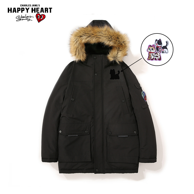查尔斯桃心中长款 连帽运动外套休闲宽松情侣棉衣 毛领棉服男女冬季