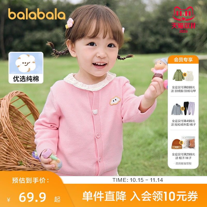 婴儿针织衫 春装 儿童薄开衫 2025新款 纯棉 宝宝毛衣秋装 巴拉巴拉童装