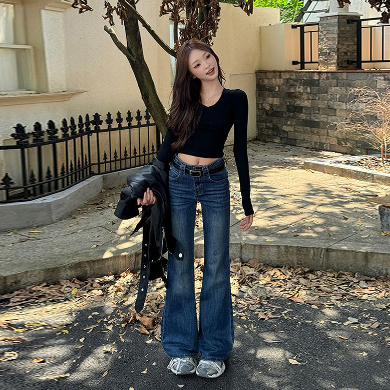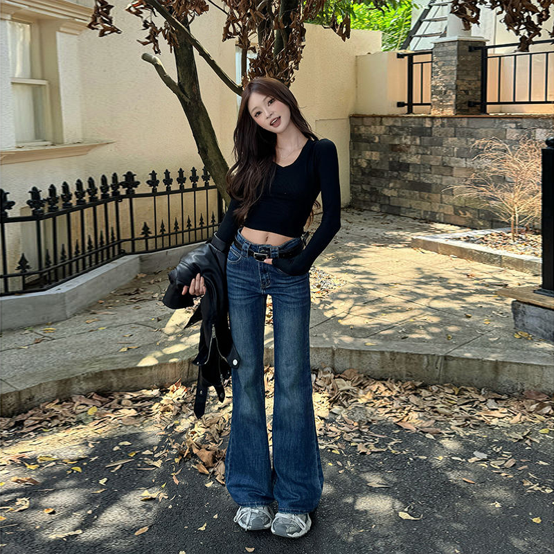 小个子马蹄喇叭裤 修身 子 女2025年春秋新款 蓝色高腰弹力微喇牛仔裤