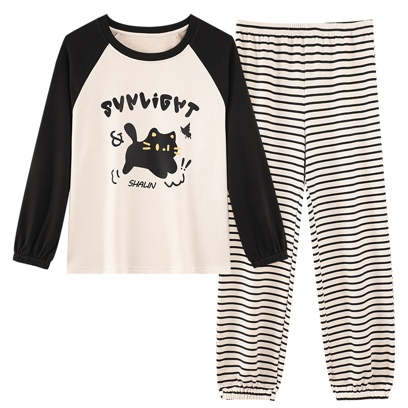 简约全棉高级感可外穿圆领家居服套装 春秋款 睡衣男士 猫人纯棉长袖