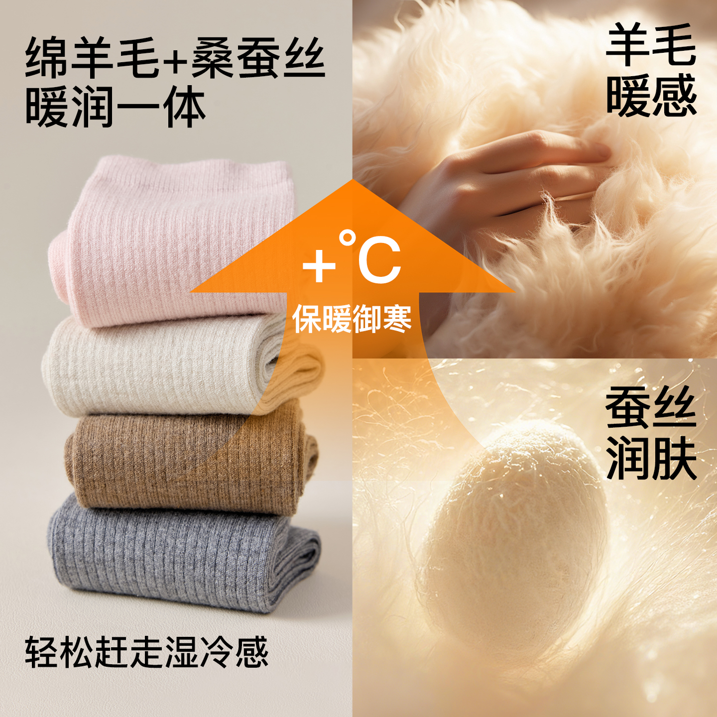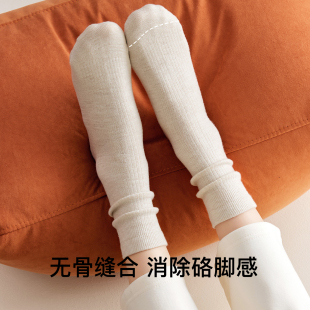 桑蚕丝羊毛袜子女秋冬款 中筒袜保暖月子袜加绒加厚防臭无骨堆堆袜