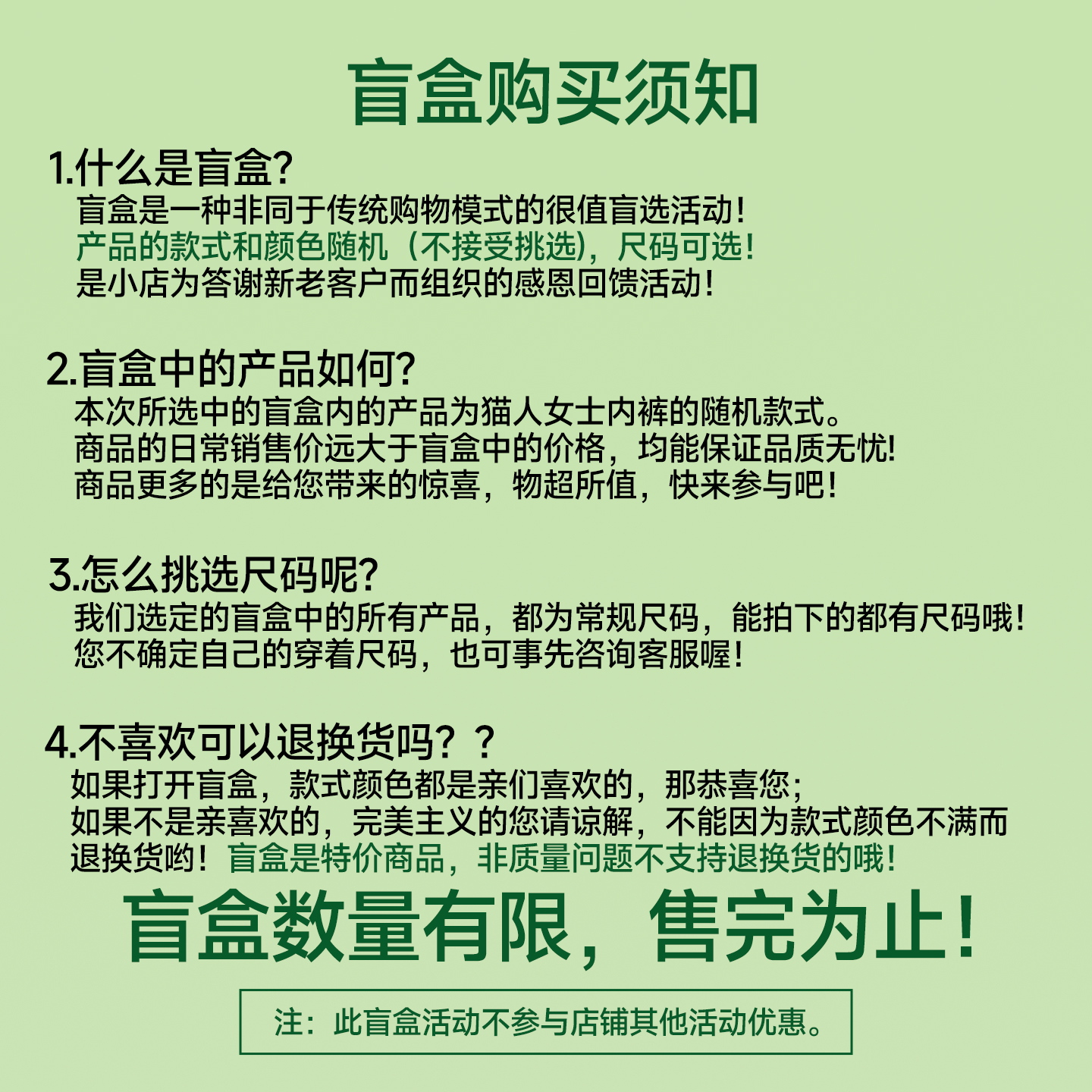 式 猫人 女颜色款 清仓价超值福袋纯棉内裤 随机发3条 盲盒女内裤