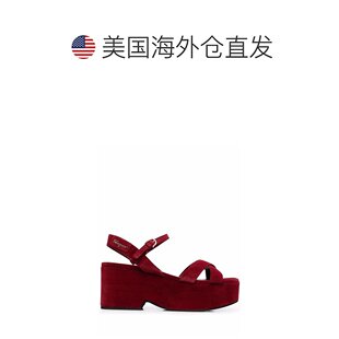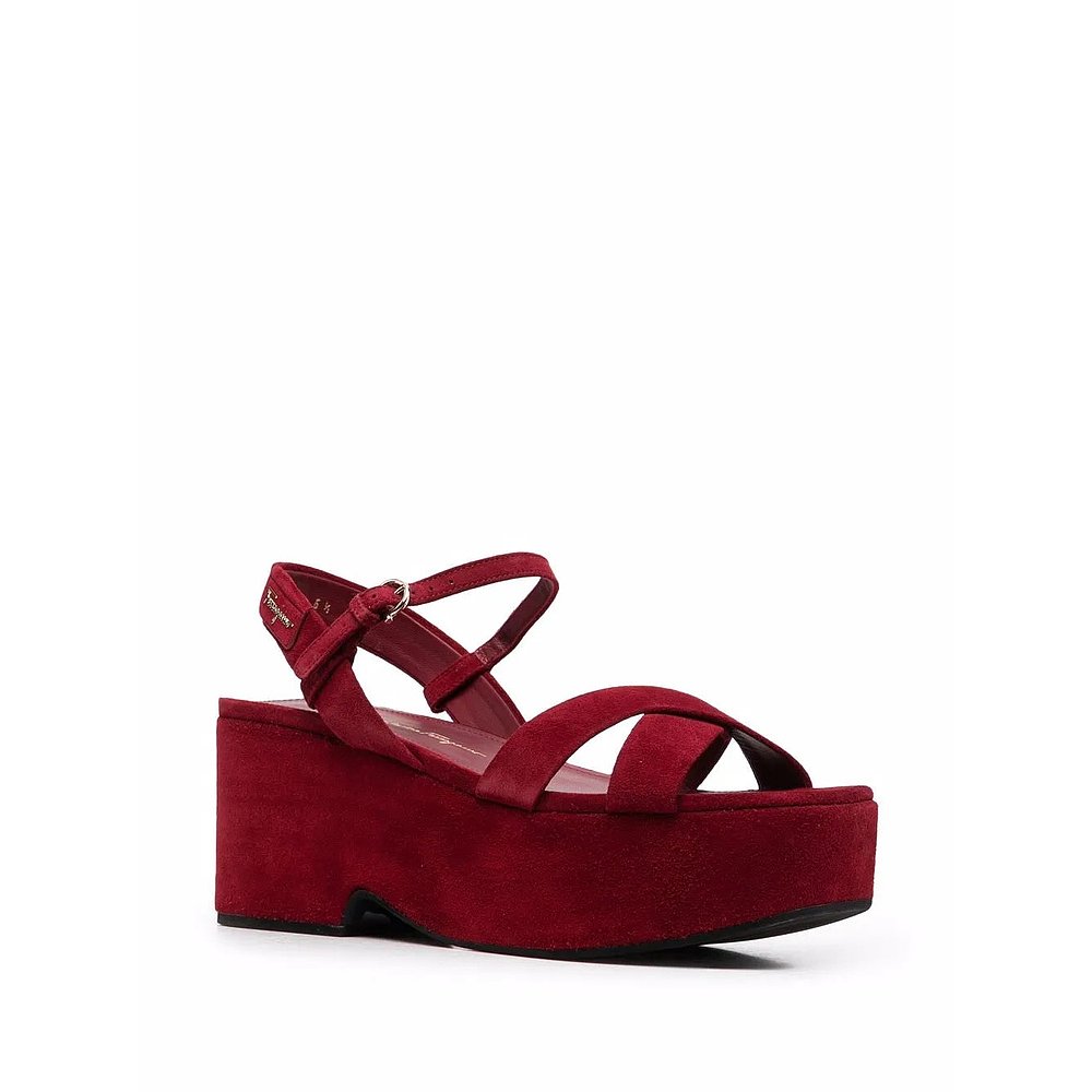 美国奥 红色 自营salvatore ferragamo菲拉格慕系带厚底块跟凉鞋