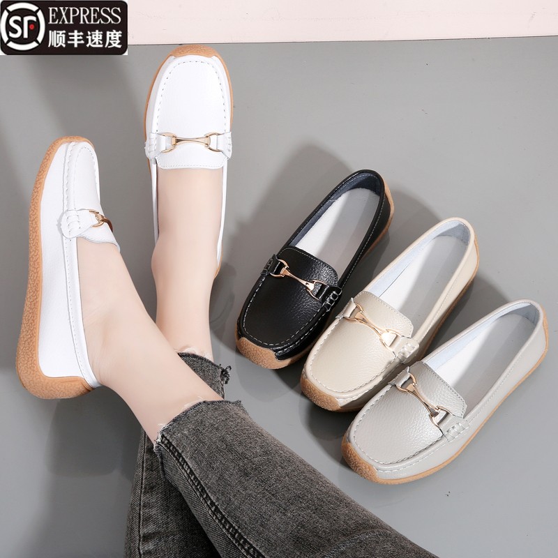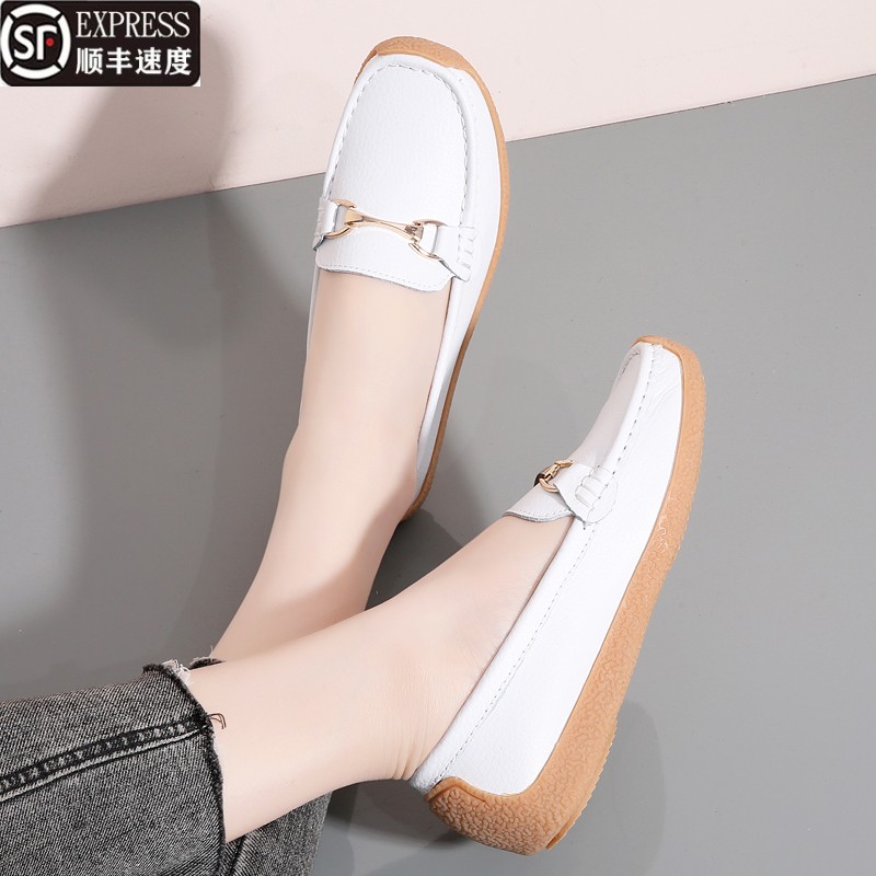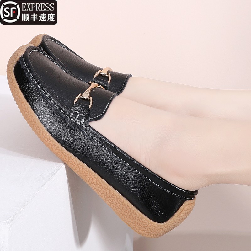 豆豆鞋 温柔风勃肯鞋 子 女2024秋冬新款 星期六真皮平底加绒浅口单鞋