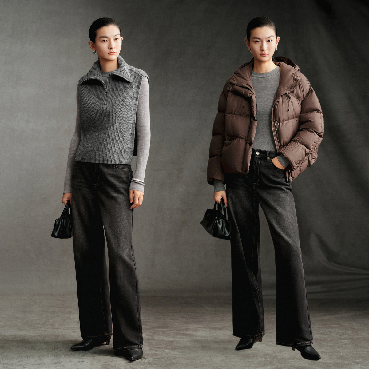 女冬季 复古垂坠渐变直筒阔腿牛仔裤 40933287 建模裤 艾诺丝雅诗