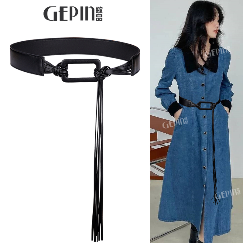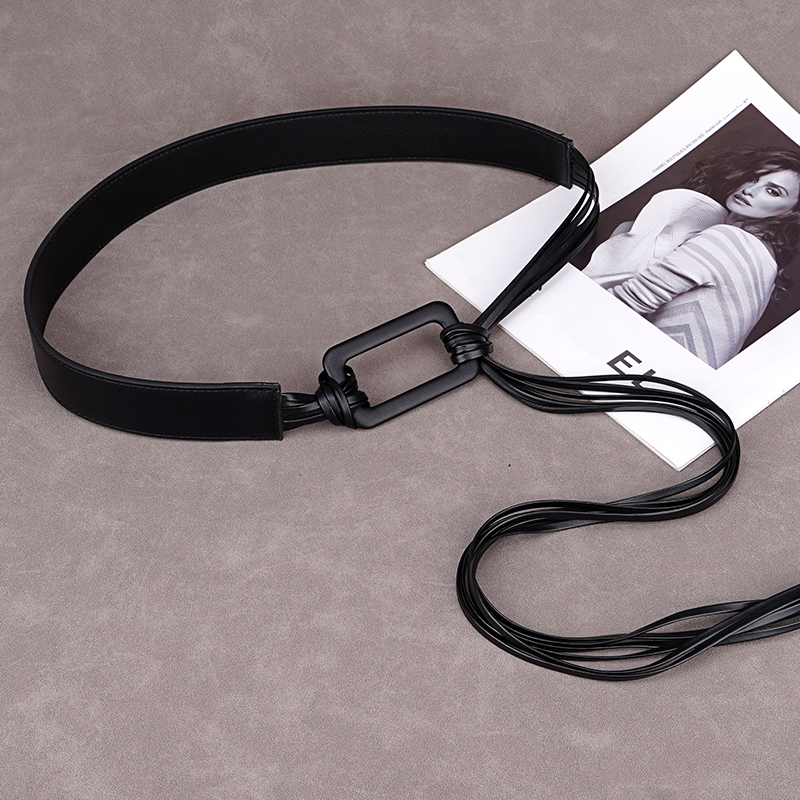 牛仔裤 裤 毛衣裙子 饰配工装 黑色宽腰带女士配饰流苏编织皮带腰封装