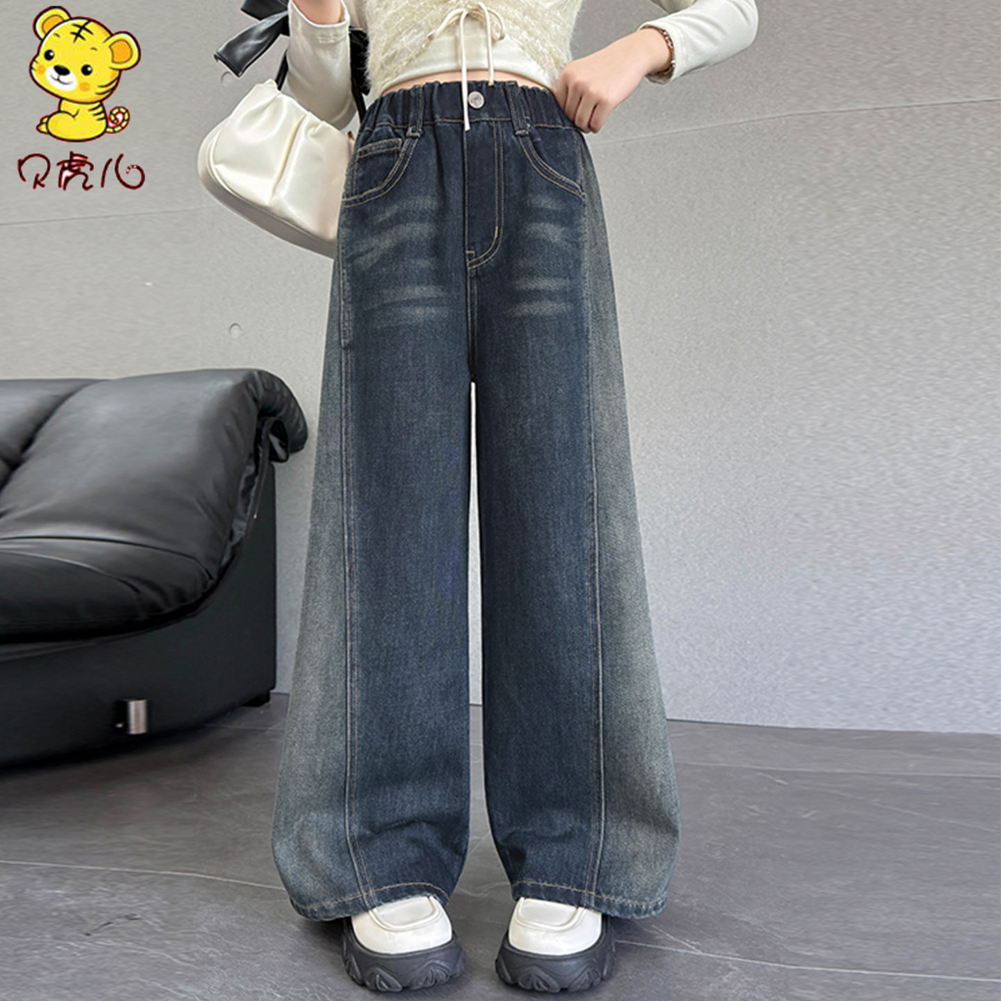 2025新款 子宽松儿童阔腿裤 秋季 中大童直筒裤 今年流行款 女童牛仔裤