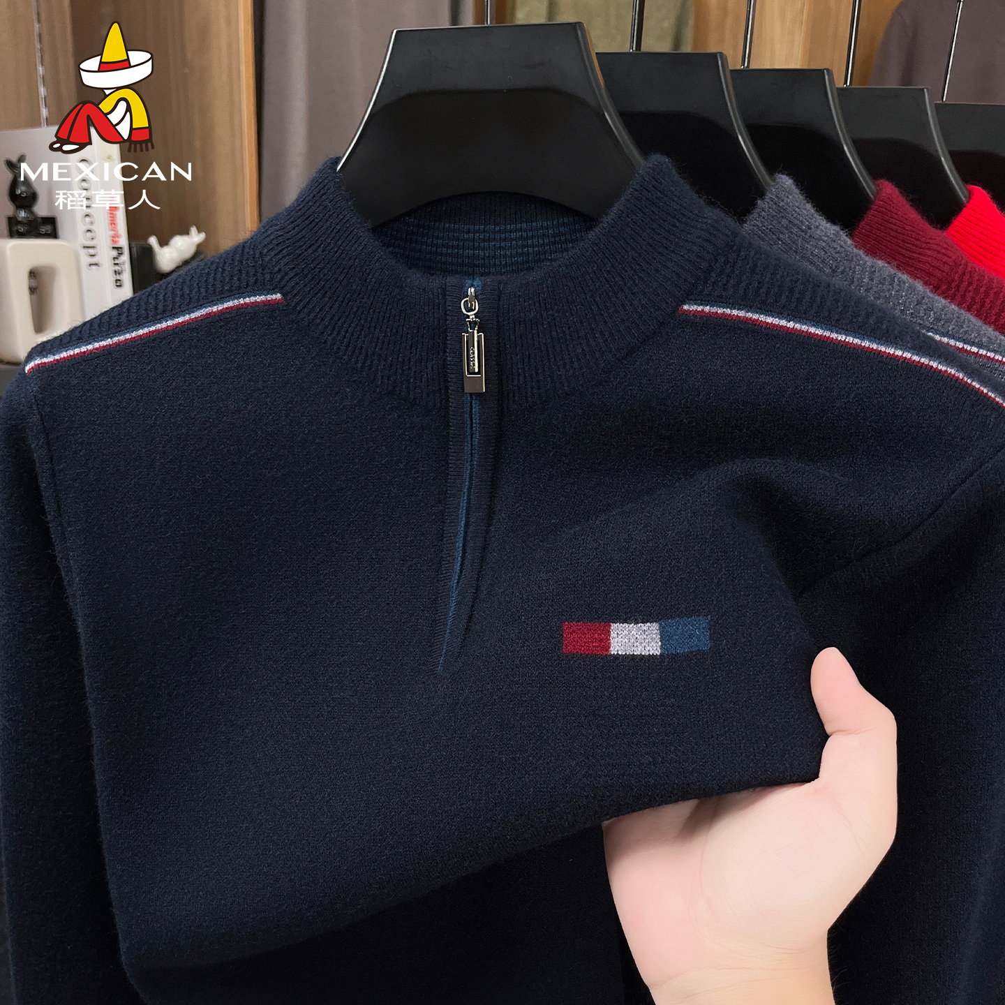 半高领拉链加厚条纹毛衣J 针织衫 稻草人毛衣男秋冬新款 中年男士